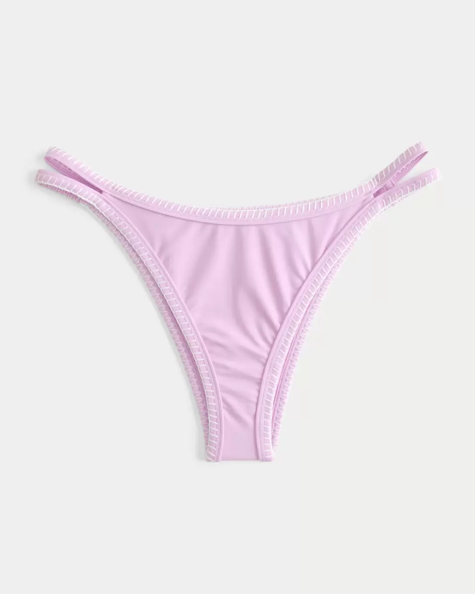 This super cute bikini bottom is designed with a high-leg silhouette and strappy sides. Stitched trims, our cheekiest coverage.