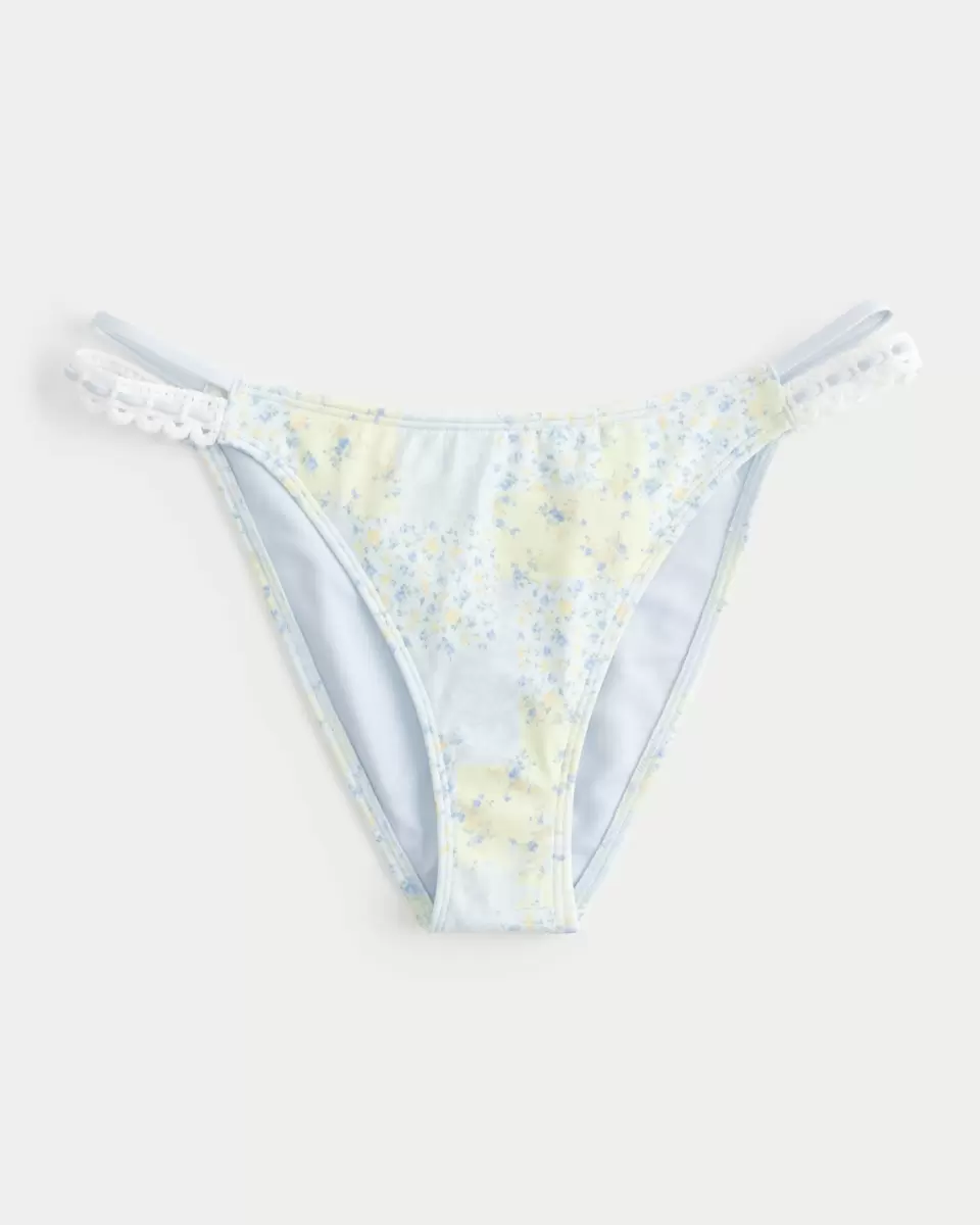 A pretty bikini bottom in soft crochet-style swim fabric. Strappy sides, high-leg silhouette, cheeky coverage. Imported.