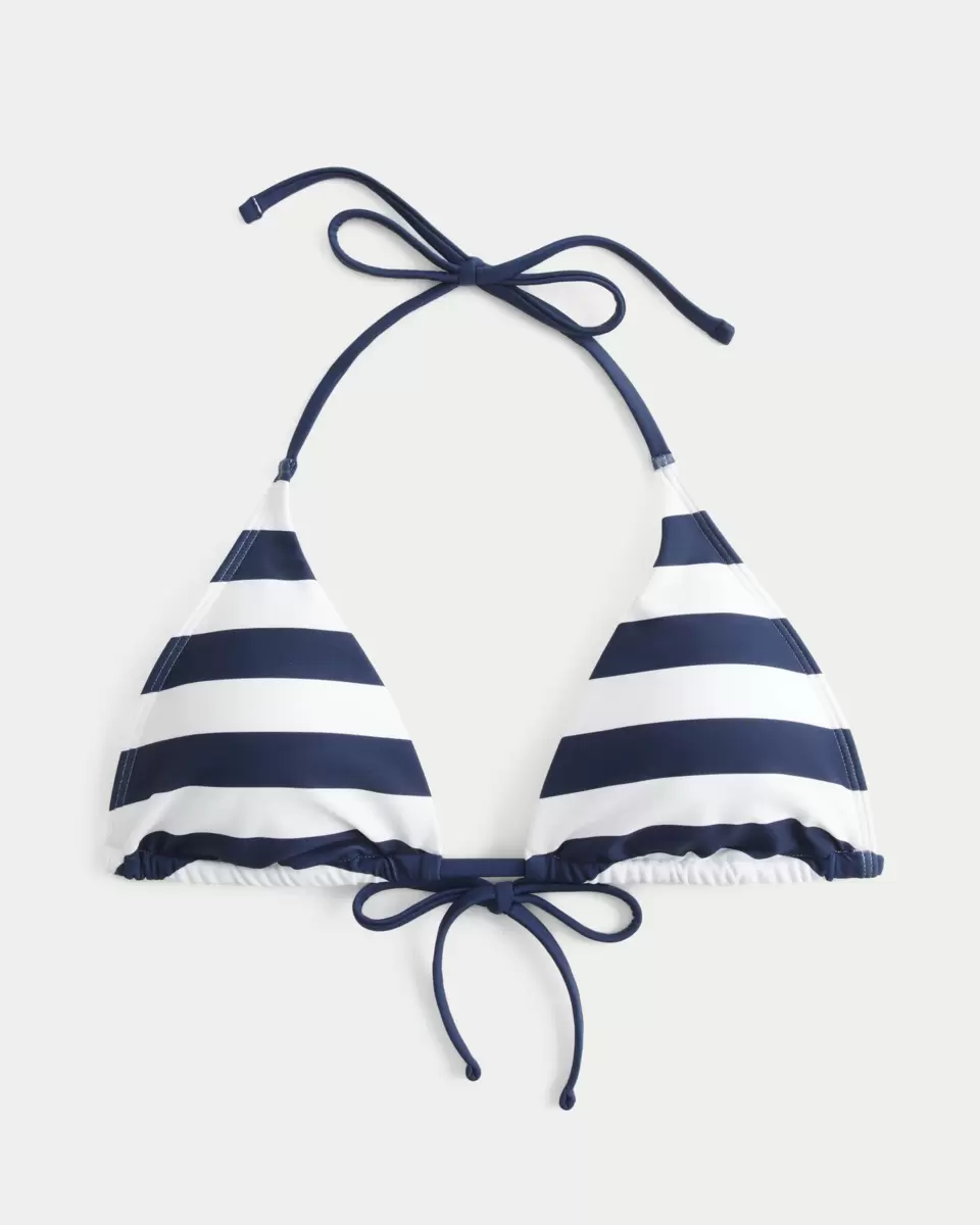 This cute and comfy Y2K-inspired bikini top is designed with a classic triangle silhouette, removable padding and tie closure. Imported.