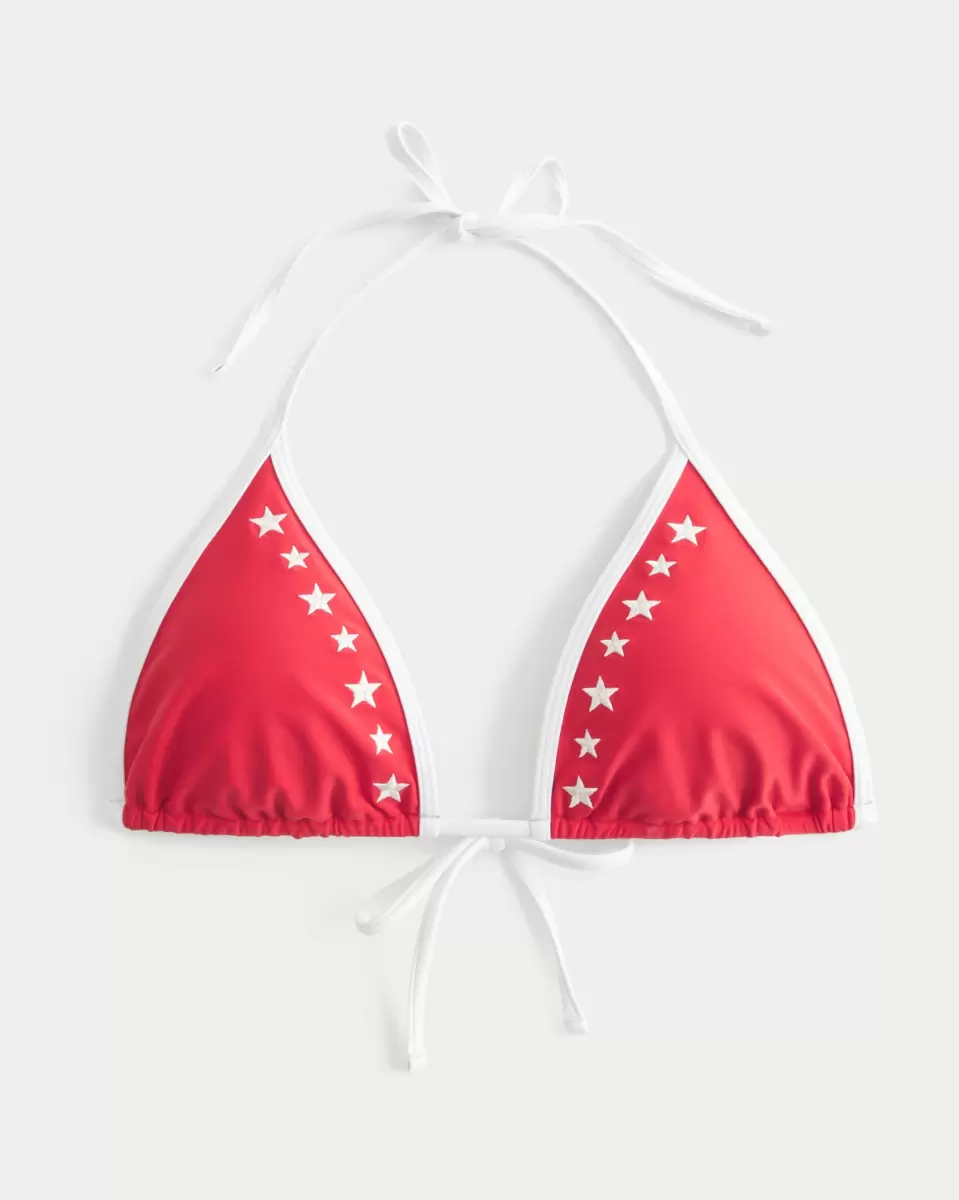 Your new fave bikini top is designed with a classic triangle silhouette and straps that tie behind the neck. Imported.