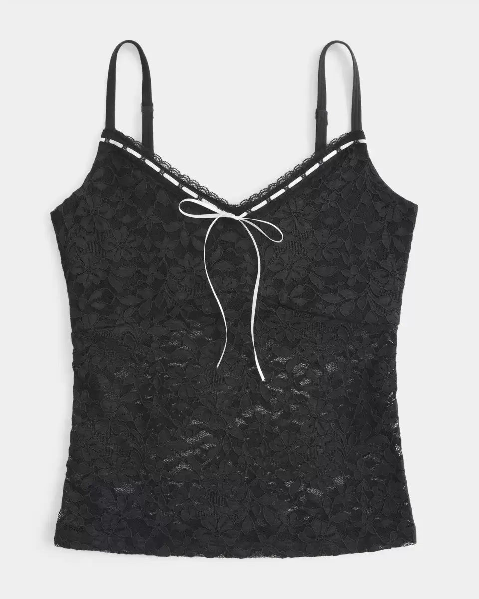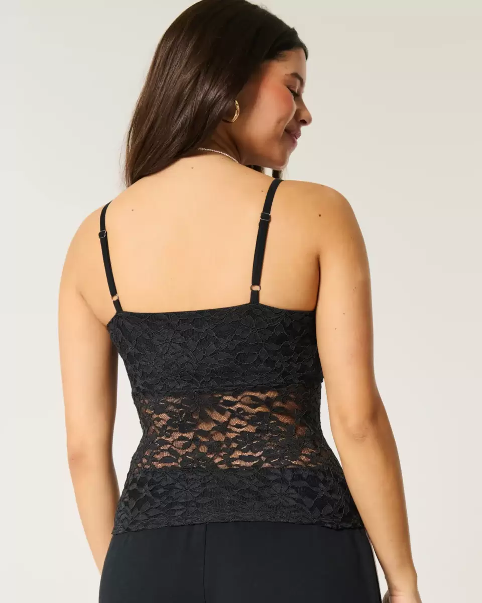 A pretty and super soft cami in all-over lace. Adjustable straps, v-neckline. Slim Fit. Imported.