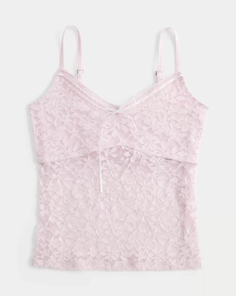 A pretty and super soft cami in all-over lace. Adjustable straps, v-neckline. Slim Fit. Imported.