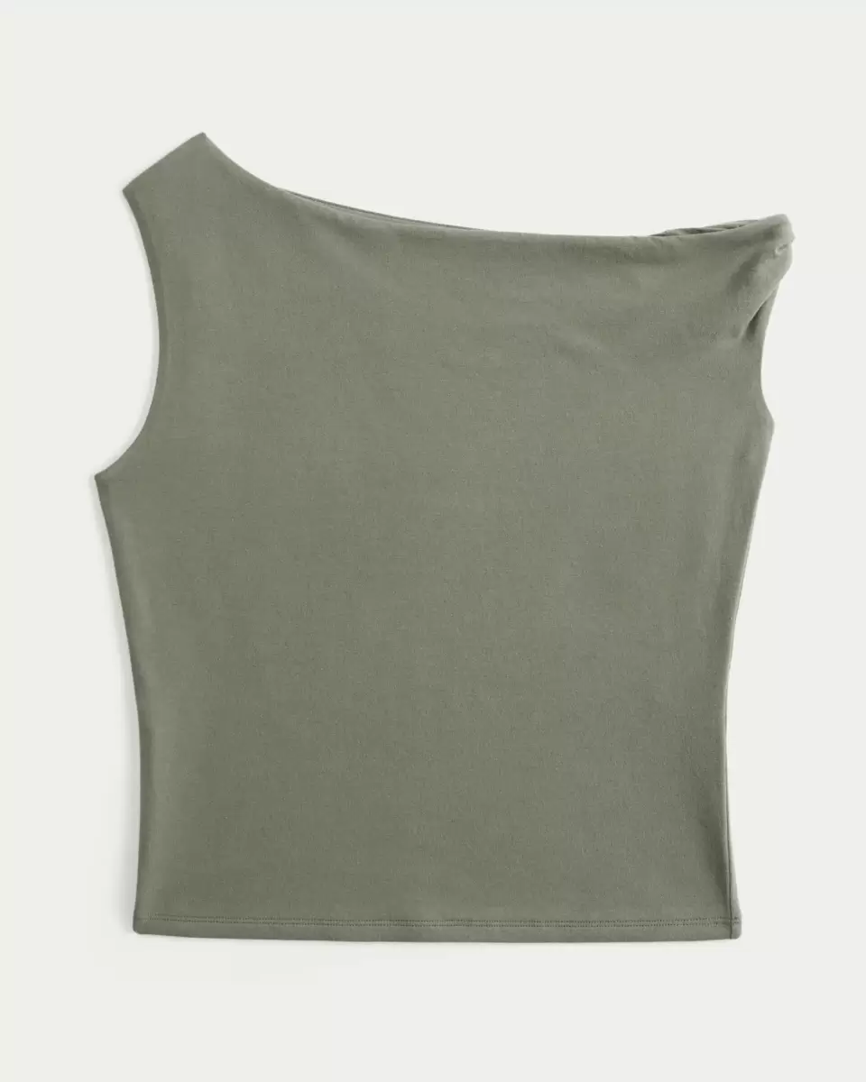 This pretty, super soft top features an asymmetrical off-the-shoulder neckline with a subtle twist detail.