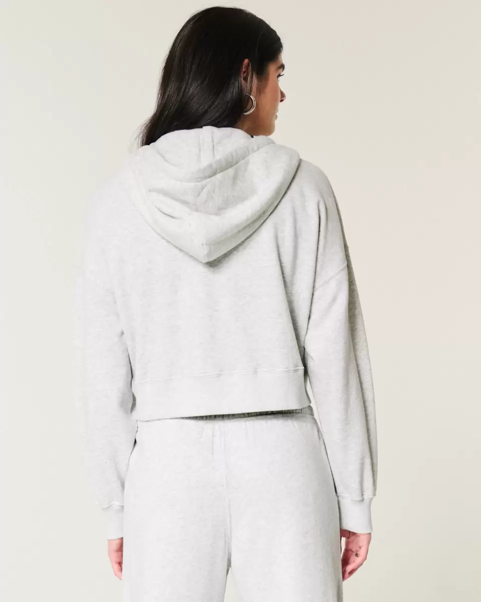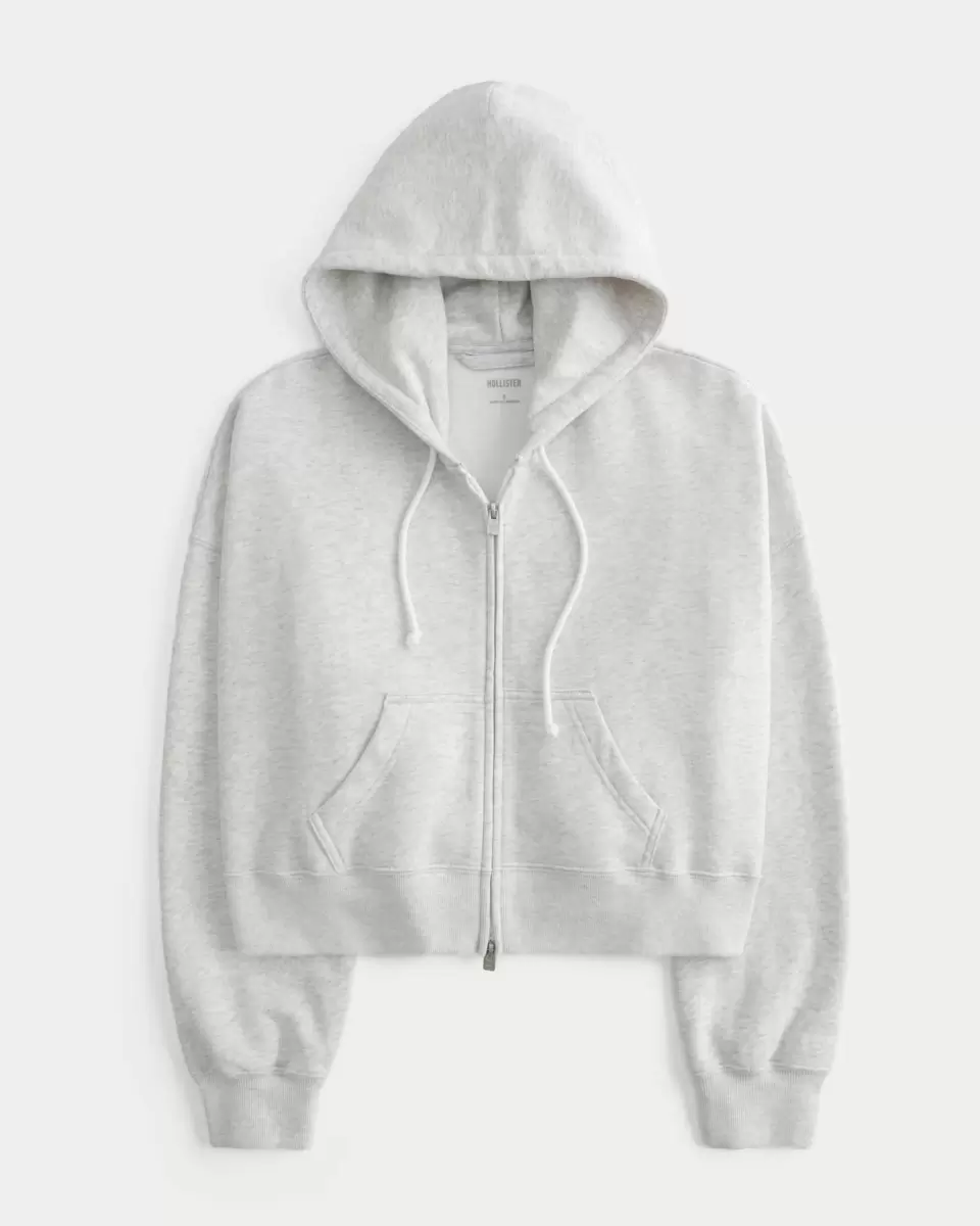 This super soft fleece hoodie features a full zip-up closure and drawstring hood. Front pockets, long sleeves. Boxy Fit. Imported.