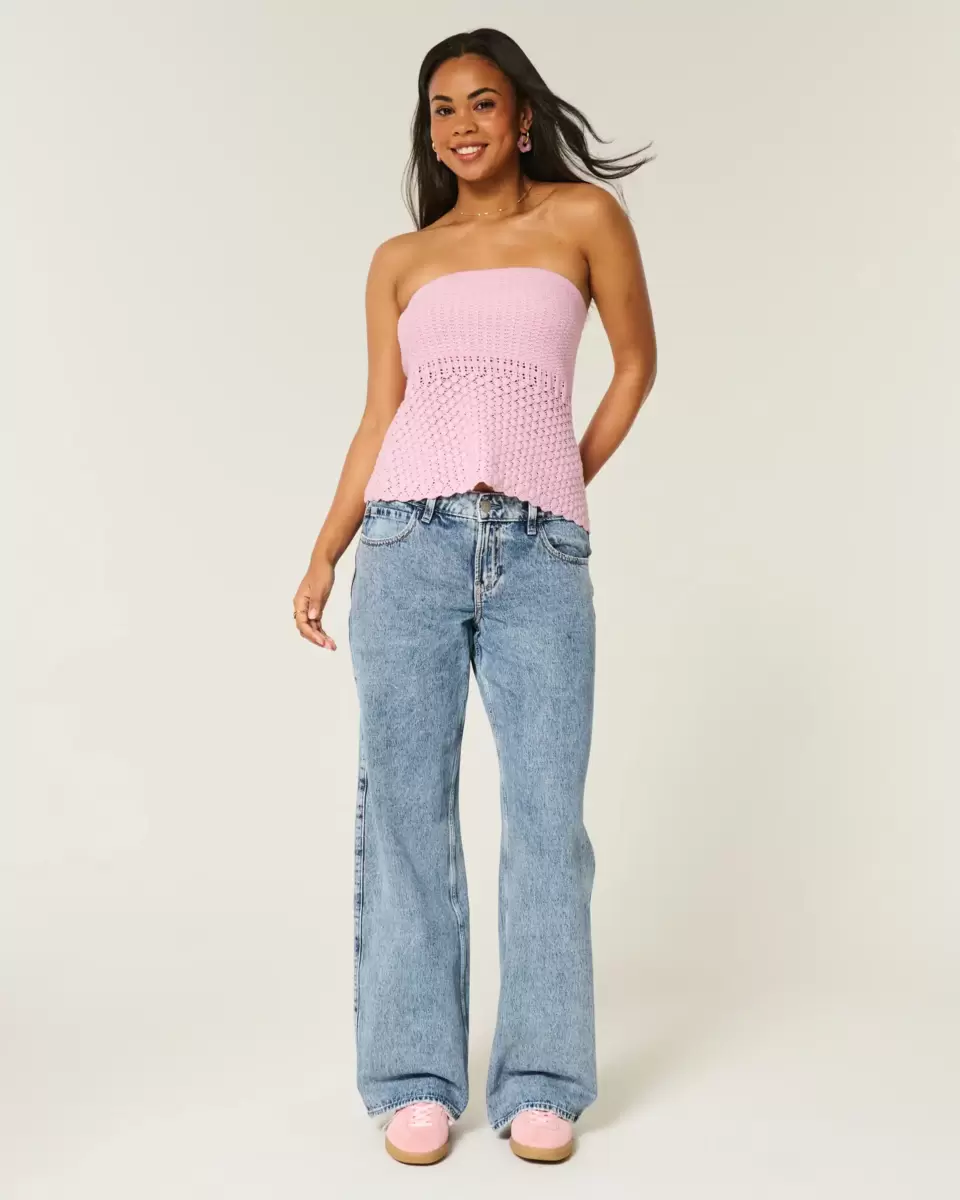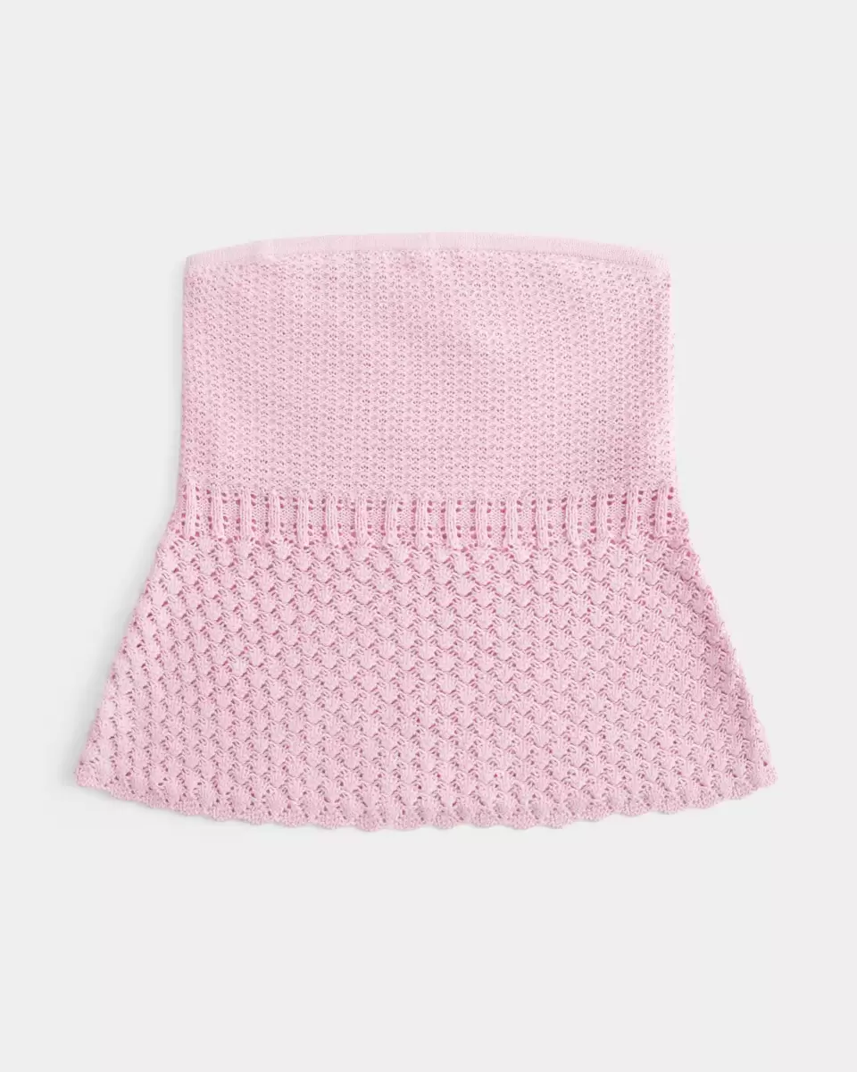 A super soft crochet-style sweater tube featuring an inner lining at the bust. Slim-fitting through the bust with a looser babydoll silhouette around the waist. Strapless. Slim Fit. Imported.