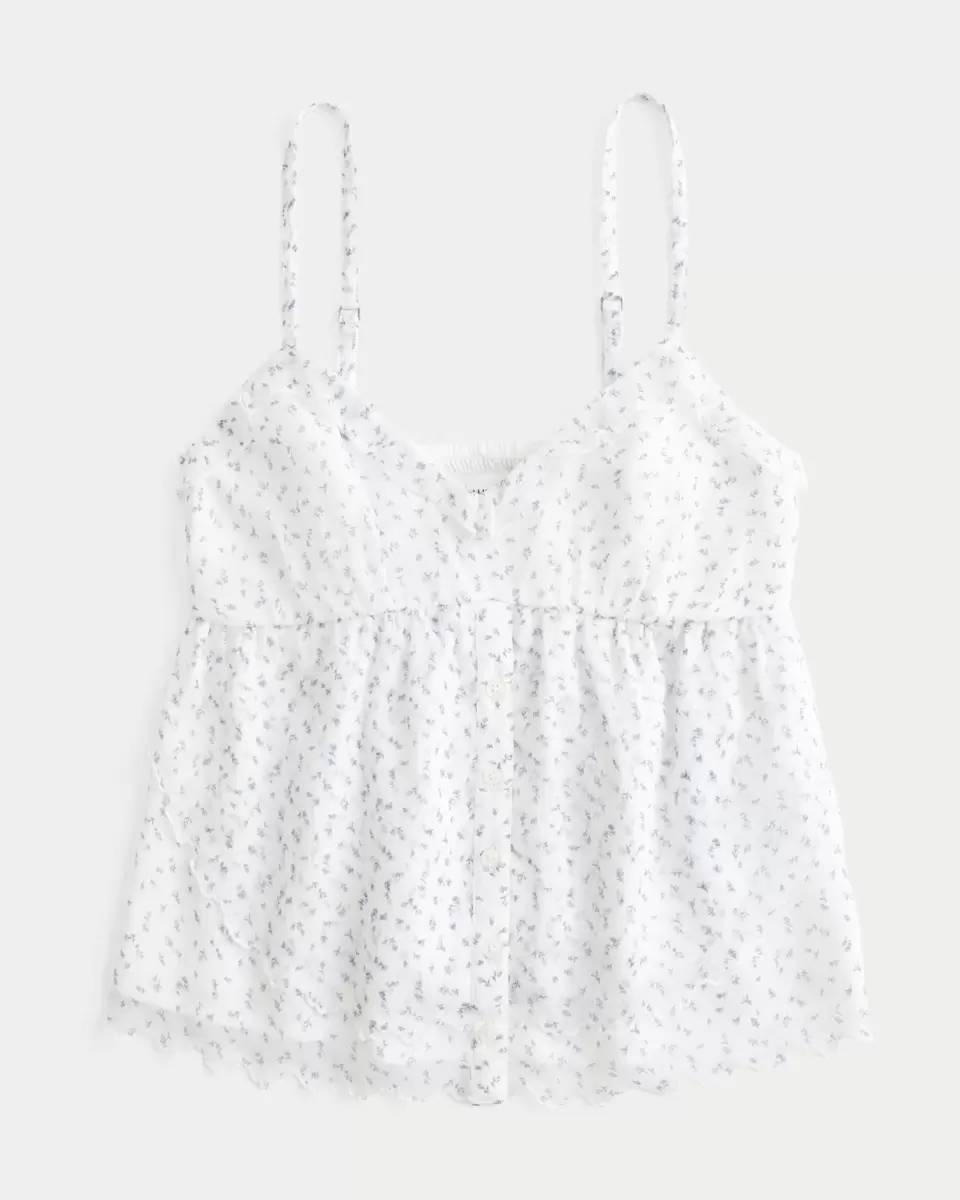 Made with super soft, flowy crinkle chiffon fabric, this babydoll top features ruffles and a tiered hem with embroidery. Button details, soft smocked back. Looks amazing dressed up or down! Imported.