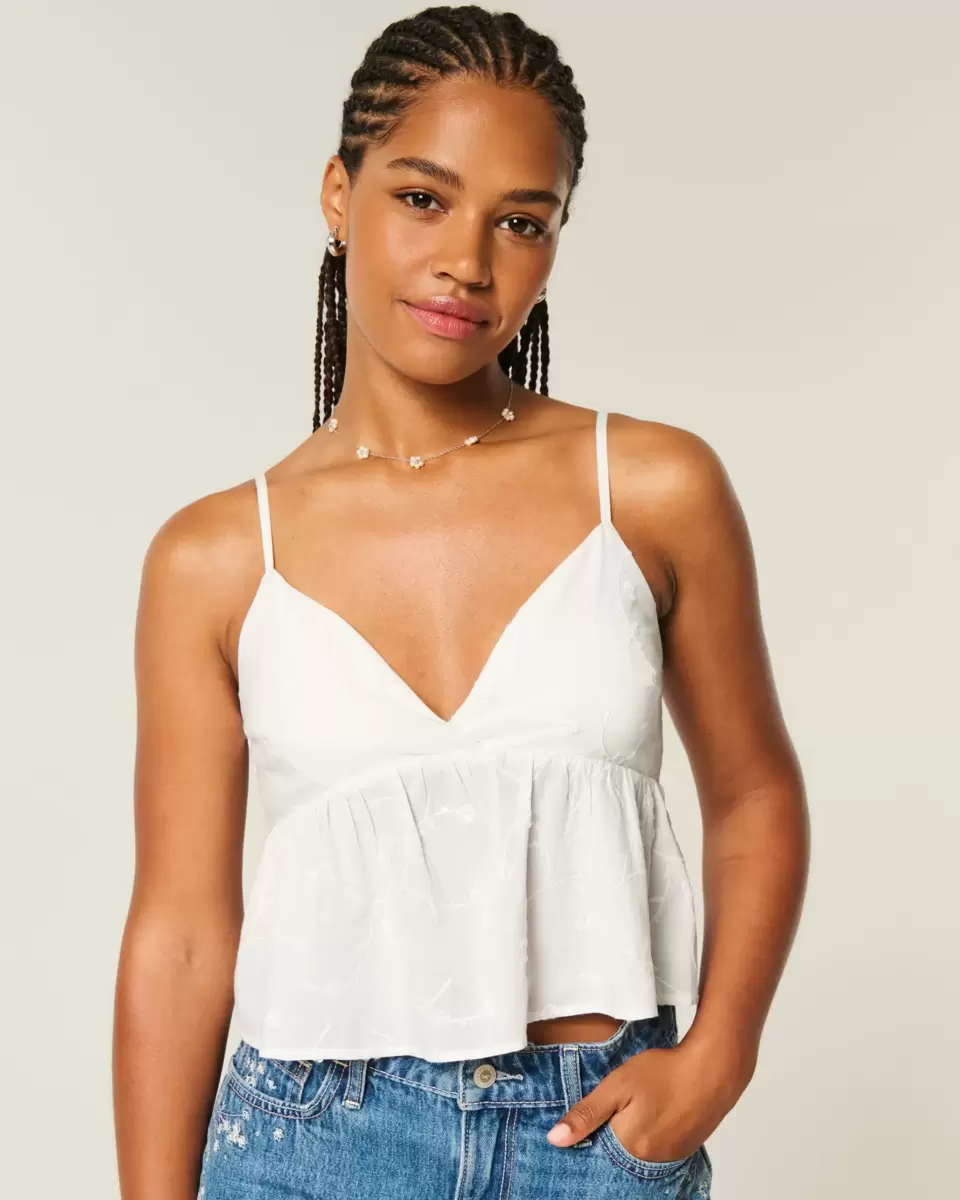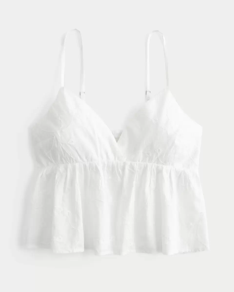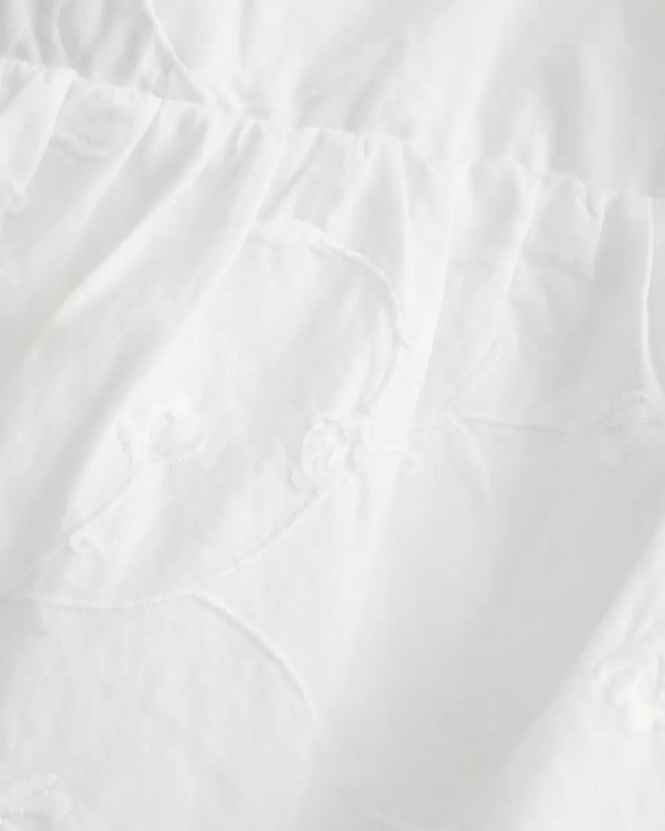 This pretty top looks amazing dressed up or down! Cute babydoll silhouette, all-over floral embroidery with shine details, soft smocked back, built-in pads, adjustable straps. Easy Fit. Imported.
