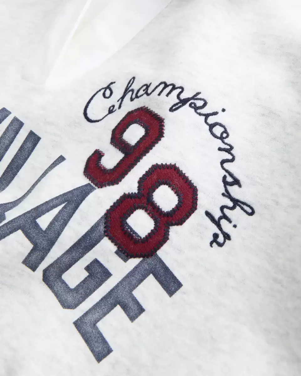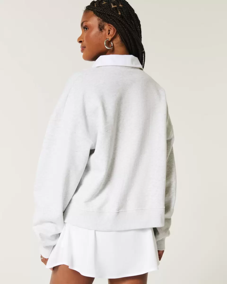 This cozy and super soft fleece rugby polo features West Village New York print graphics, applique and embroidery. Buttonless placket, collar, long sleeves. Easy Fit. Imported.