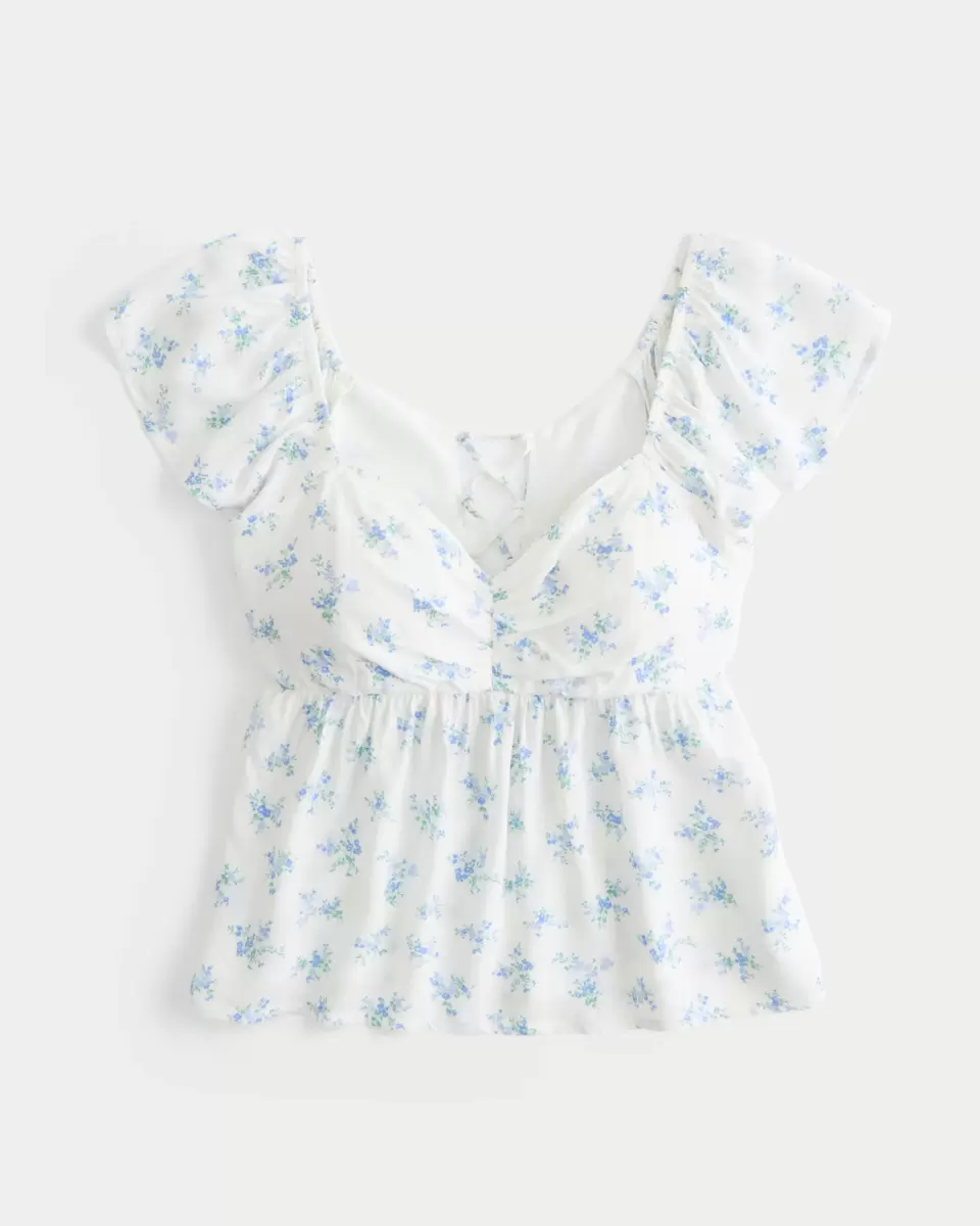 Your new fave top is designed with a babydoll silhouette, flutter sleeves and a lace-up open back. Built-in bust pad details, flowy hem. Easy Fit. Imported.