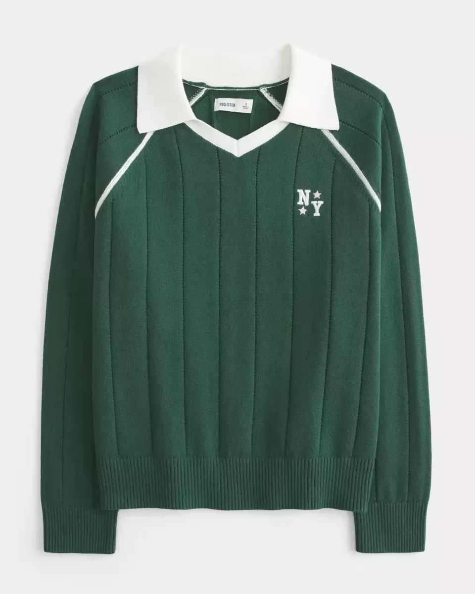 Unbelievably soft and comfy, this sweater polo features sporty NY graphic embroidery at the left chest. Collar, ribbed trims, long sleeves. Easy Fit.