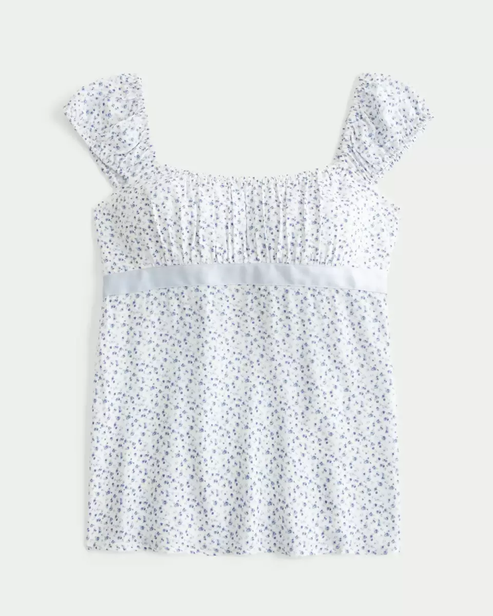 A flowy and super soft babydoll top featuring a pretty satin tie detail. Ruched detailing through the bust, soft smocked back. Easy Fit. Imported.