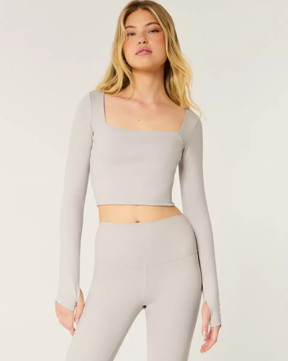 Designed in our breathable, 4-way stretch, moisture-wicking Recharge fabric with a super soft, brushed feel. This top features a square neckline and long sleeves with thumb openings. Imported.