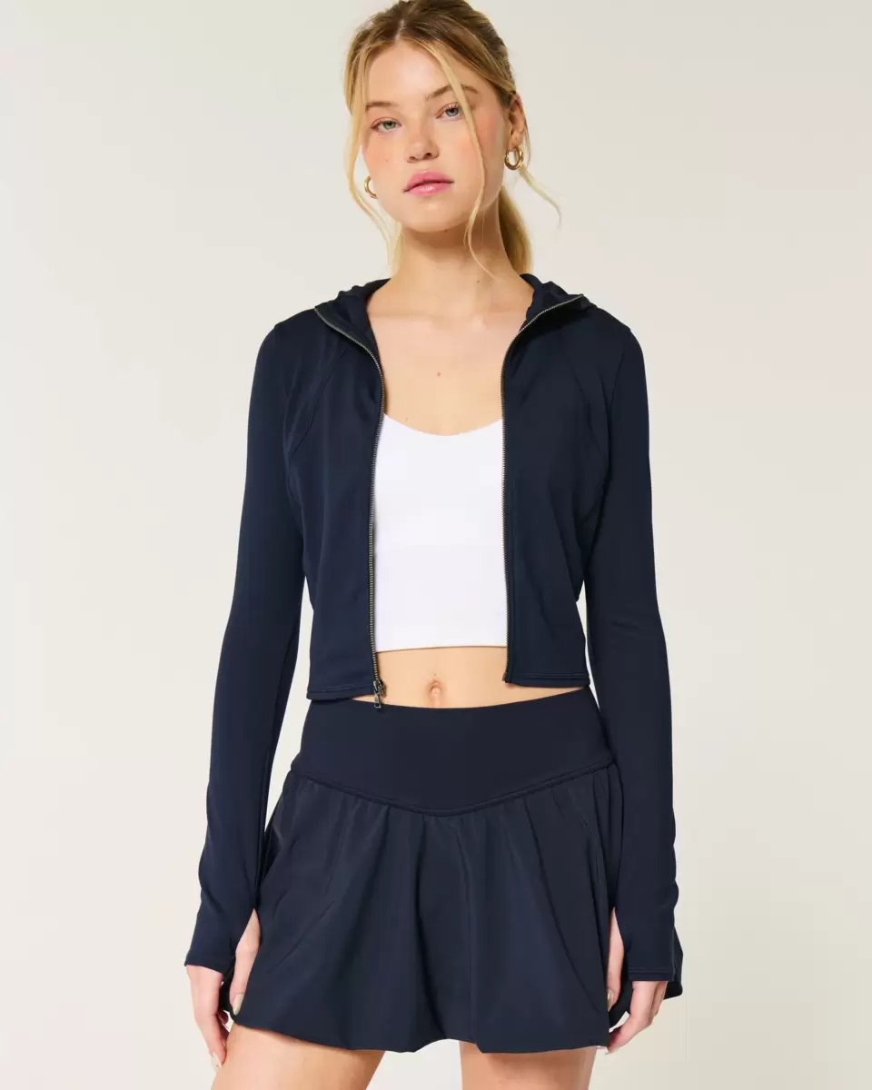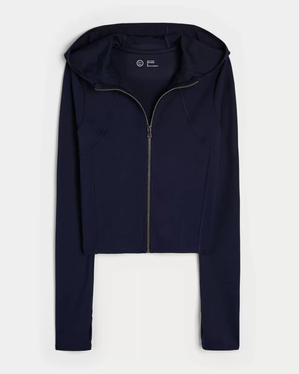 This super cute hoodie is designed in our breathable, 4-way stretch, moisture-wicking Recharge fabric with a super soft, brushed feel. Long sleeves, full zip-up closure, hood. Slim Fit. Imported.