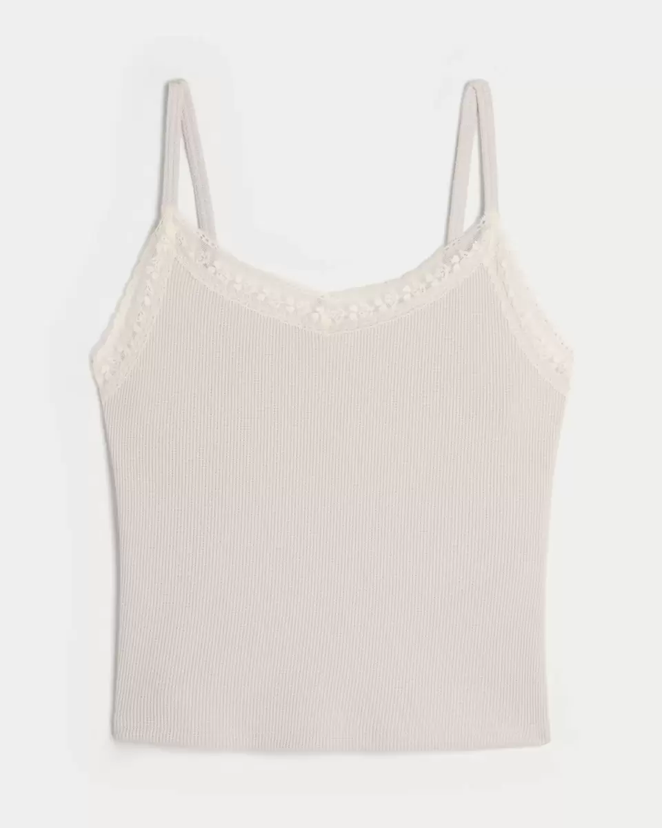 A super soft and comfy cami in waffle fabric, featuring pretty lace trim at the neckline. Imported.