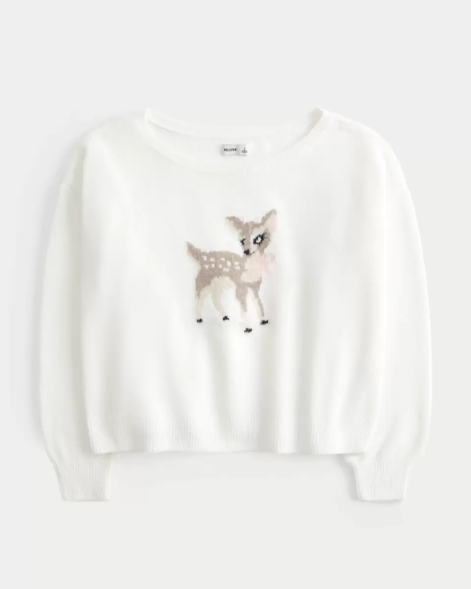 Hollister Comfy Cloud Easy Off-the-Shoulder Deer Graphic Sweater