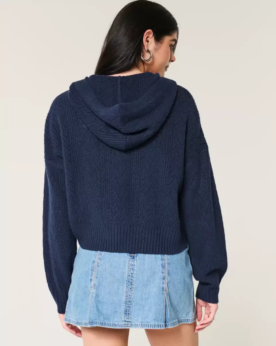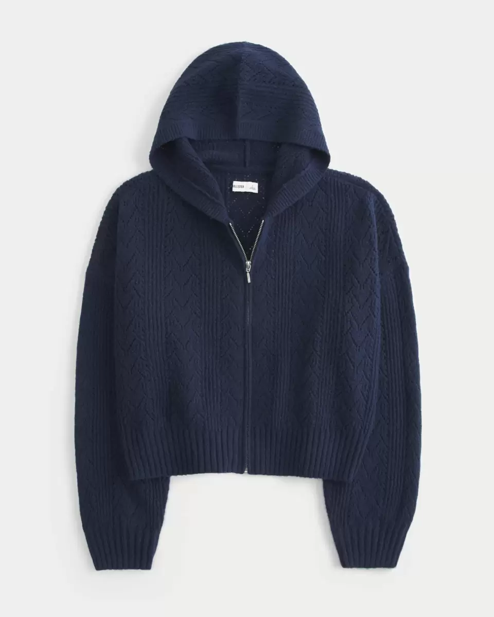 A cozy and super soft sweater hoodie with textured patterns and a zip-up closure. Ribbed trims, long sleeves. Easy Fit. Imported.