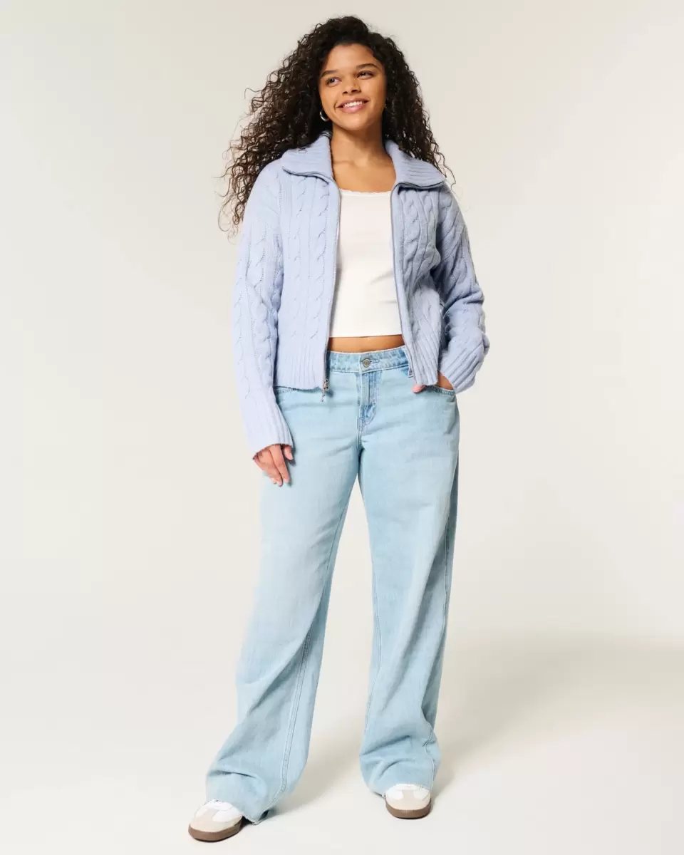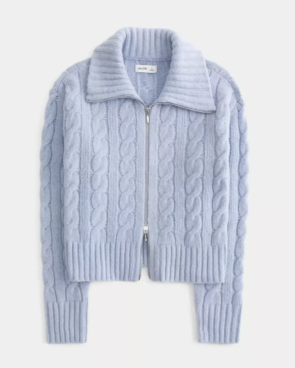 Made with our unbelievably soft Comfy Cloud knit fabric, this sweater features classic cable-knit patterns, a collar and two-way zipper closure. Ribbed trims, long sleeves. Easy Fit. Imported.