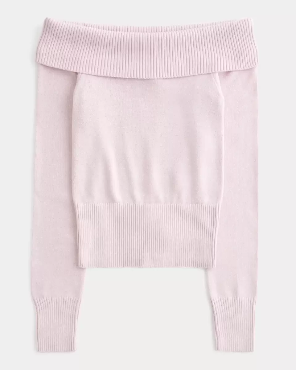 A cozy and super soft sweater in a stretchy cotton blend. Foldover off-the-shoulder neckline, long sleeves, ribbed trims. Slim Fit.