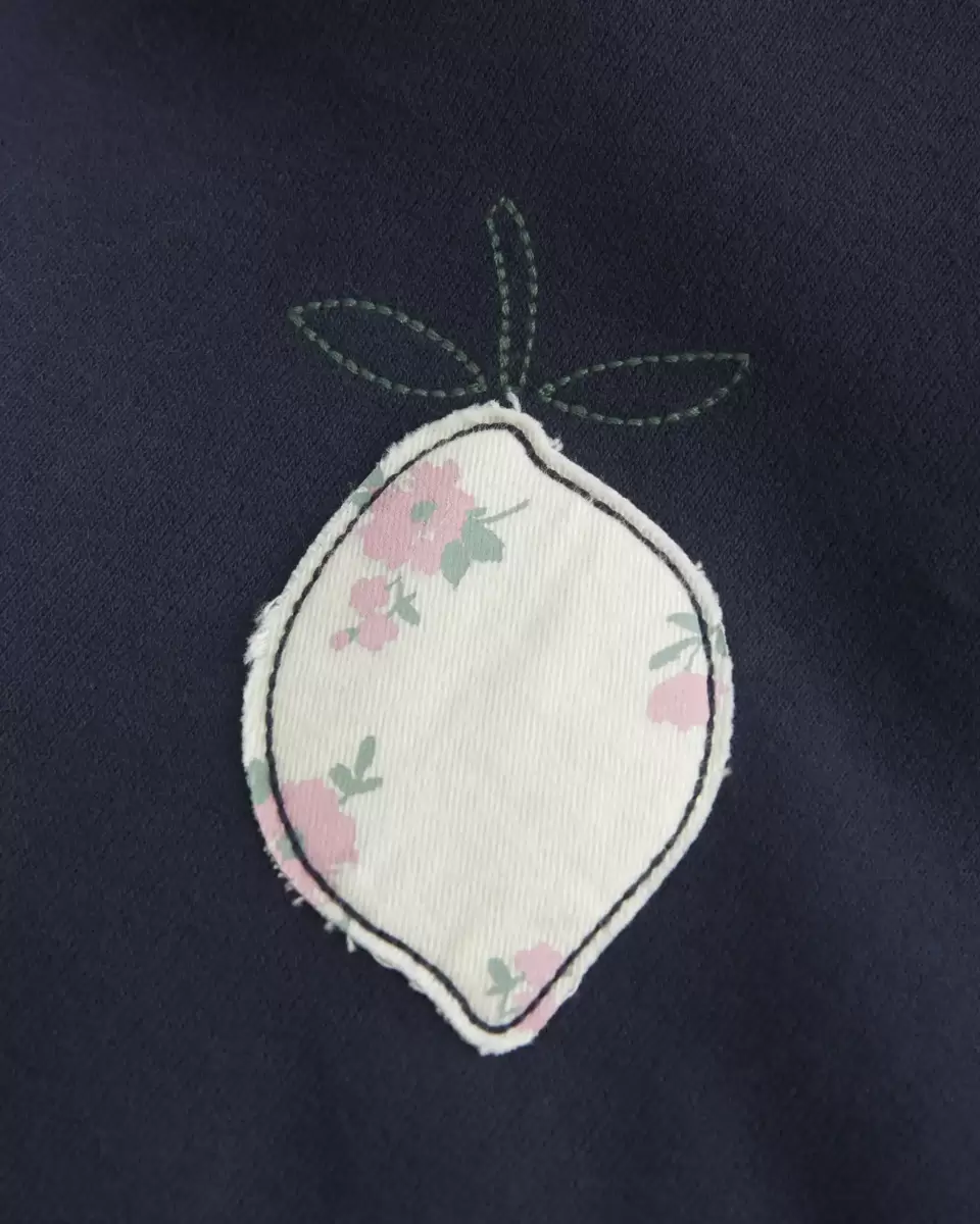 A super soft fleece hoodie featuring fruit graphic applique at the back and hood. Long sleeves, front pouch pocket. Oversized Fit. Imported.
