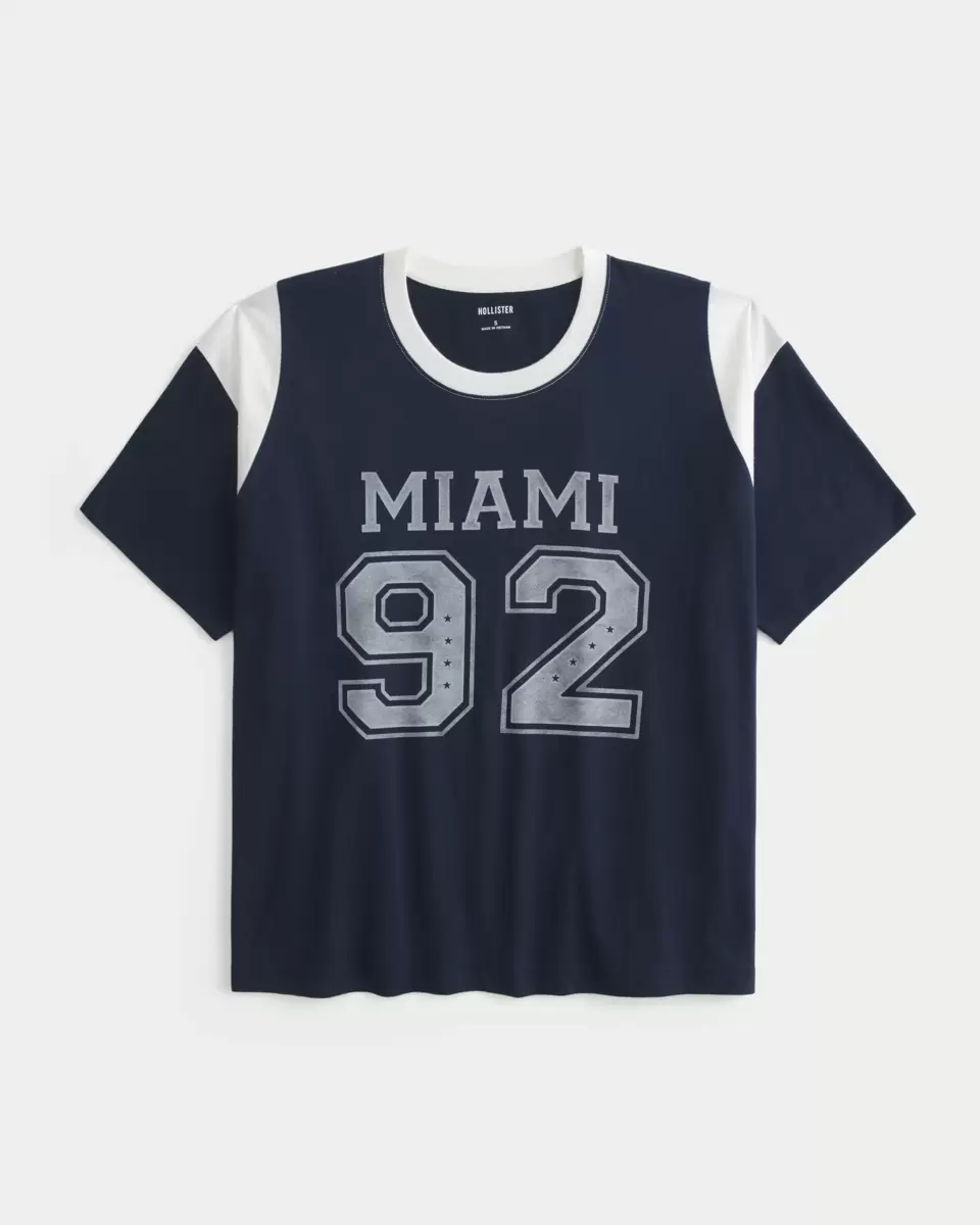 A super soft 100% cotton tee featuring sporty Miami print graphics. Crew neckline, short sleeves. Oversized Fit. Imported.
