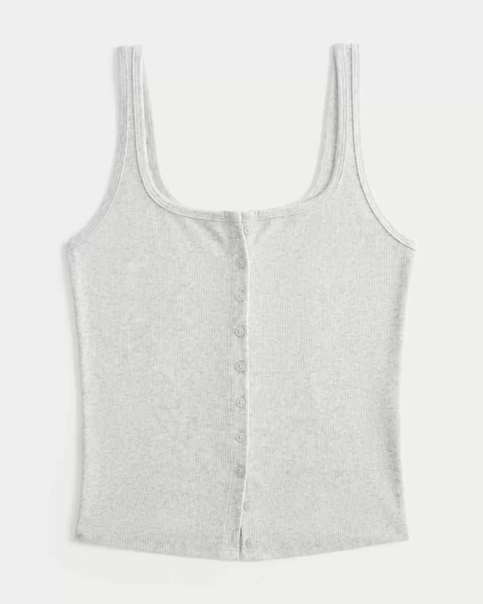 A super soft and comfy tank in ribbed fabric, designed with a button-through closure. Slim Fit. Imported.