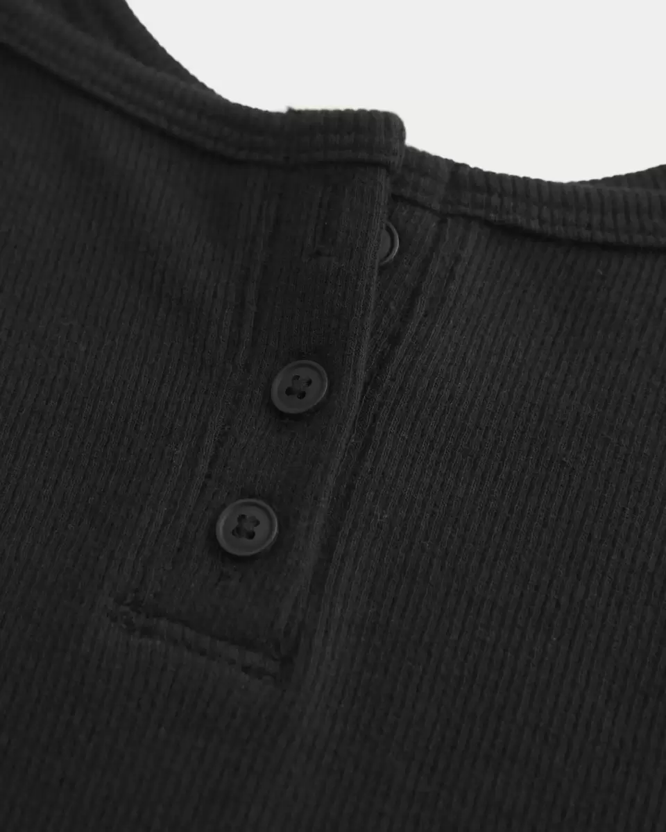 A super soft and comfy cami in ribbed fabric, designed with a notch button henley placket and adjustable straps. Slim Fit.