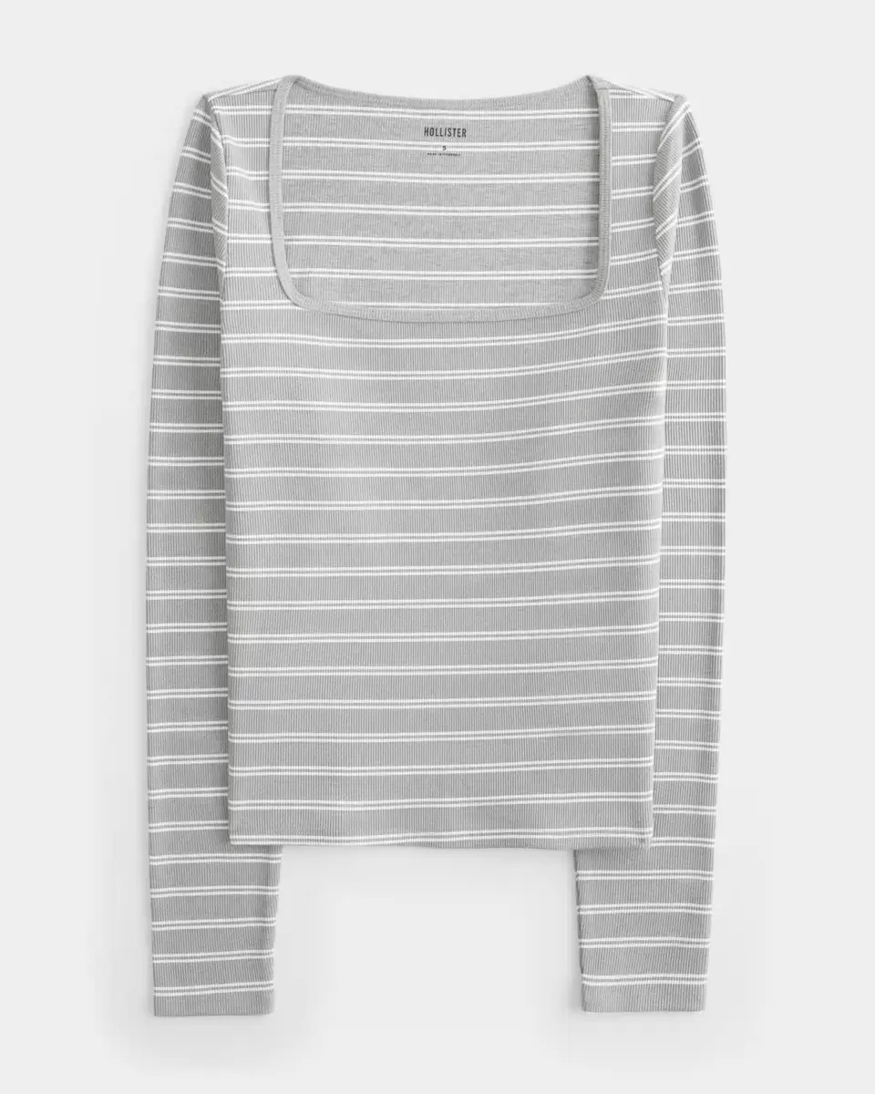 An ultra-soft and cozy long-sleeve top in ribbed fabric with a seamless look and feel. Square neckline, long sleeves. Slim Fit. Imported.