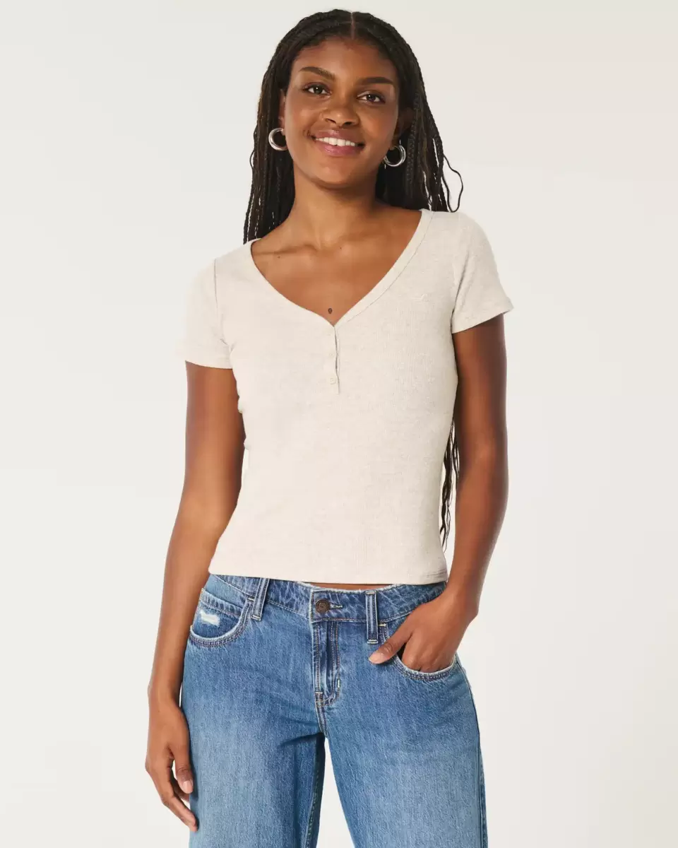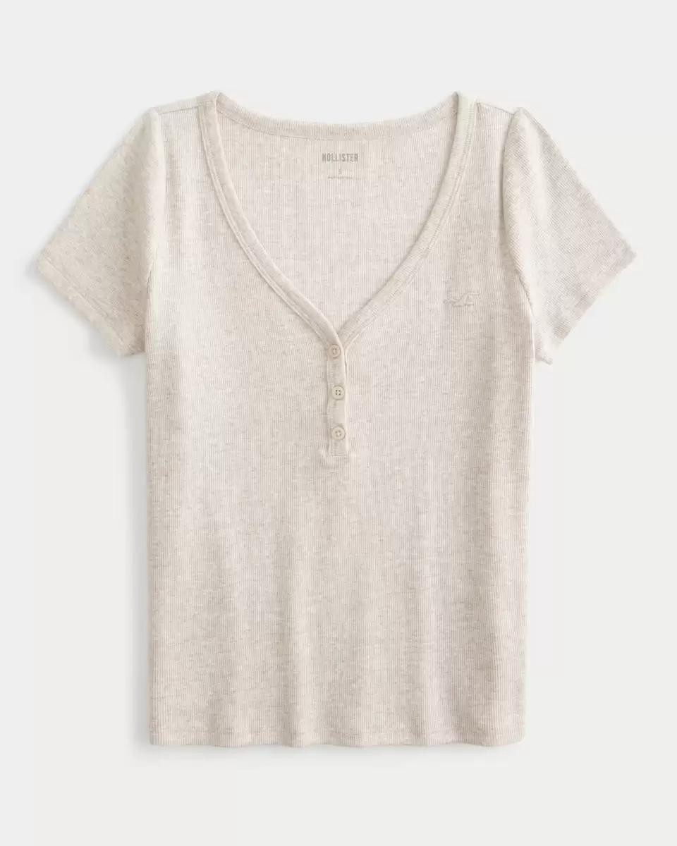 This cute baby tee is made with super soft ribbed fabric and features a v-neckline with button placket. Embroidered left chest logo icon, short sleeves. Slim Fit. Imported.