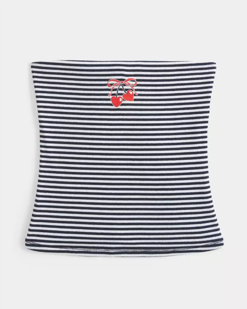 A comfy strapless tube top in super soft ribbed fabric featuring a pretty embroidered cherry heart detail. Slim Fit. Imported.