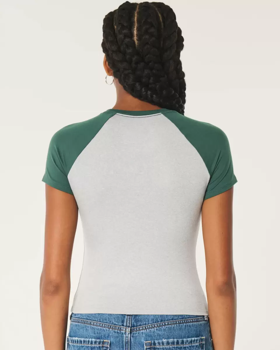 A comfy baby tee made with soft stretch fabric with a seamless look and feel. Crew neckline, short sleeves, longer length. Slim Fit.
