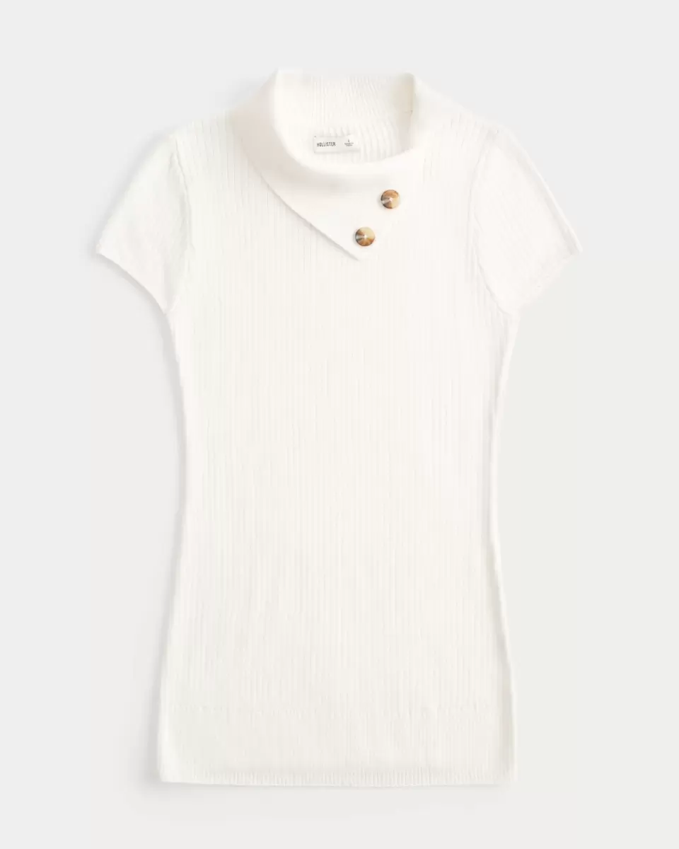 A cozy and super soft sweater designed with a classic tunic silhouette. Foldover neckline with button details, short sleeves. Slim Fit. Imported.
