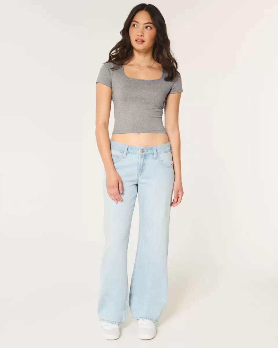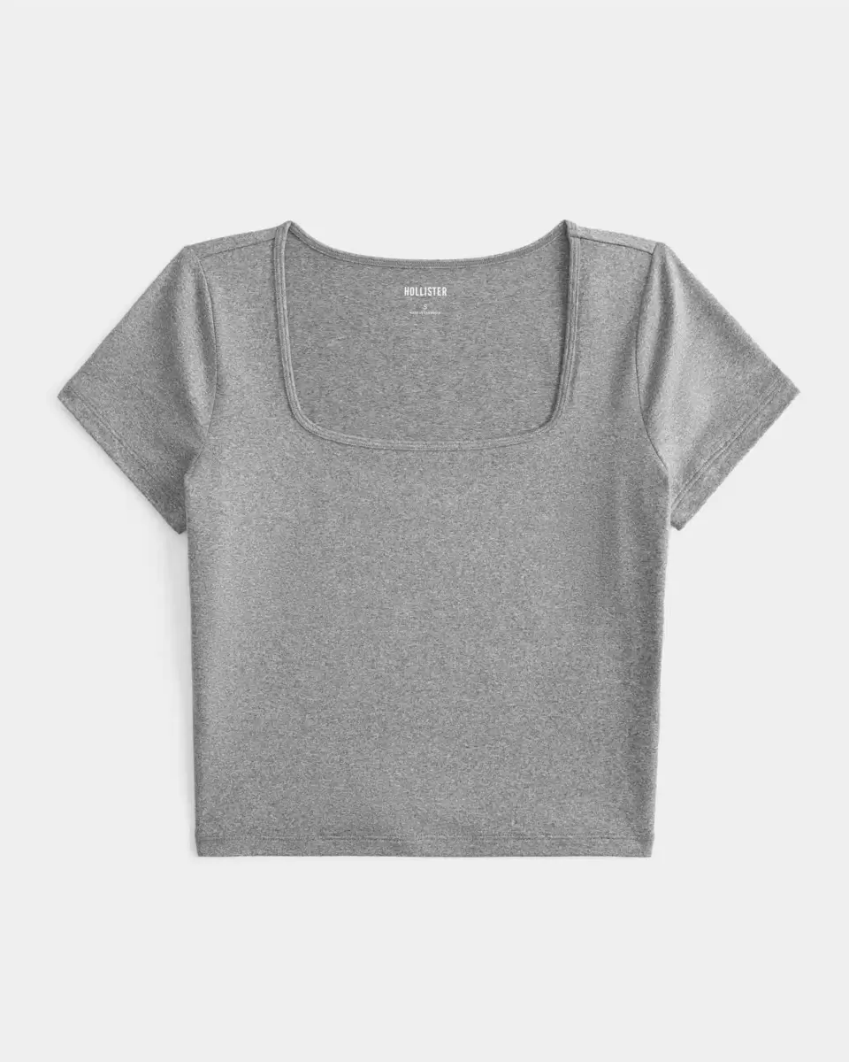 A cute and cozy baby tee in soft stretch fabric with a seamless look and feel. Designed with a slightly shrunken silhouette, square neckline and short sleeves. Slim Fit. Imported.