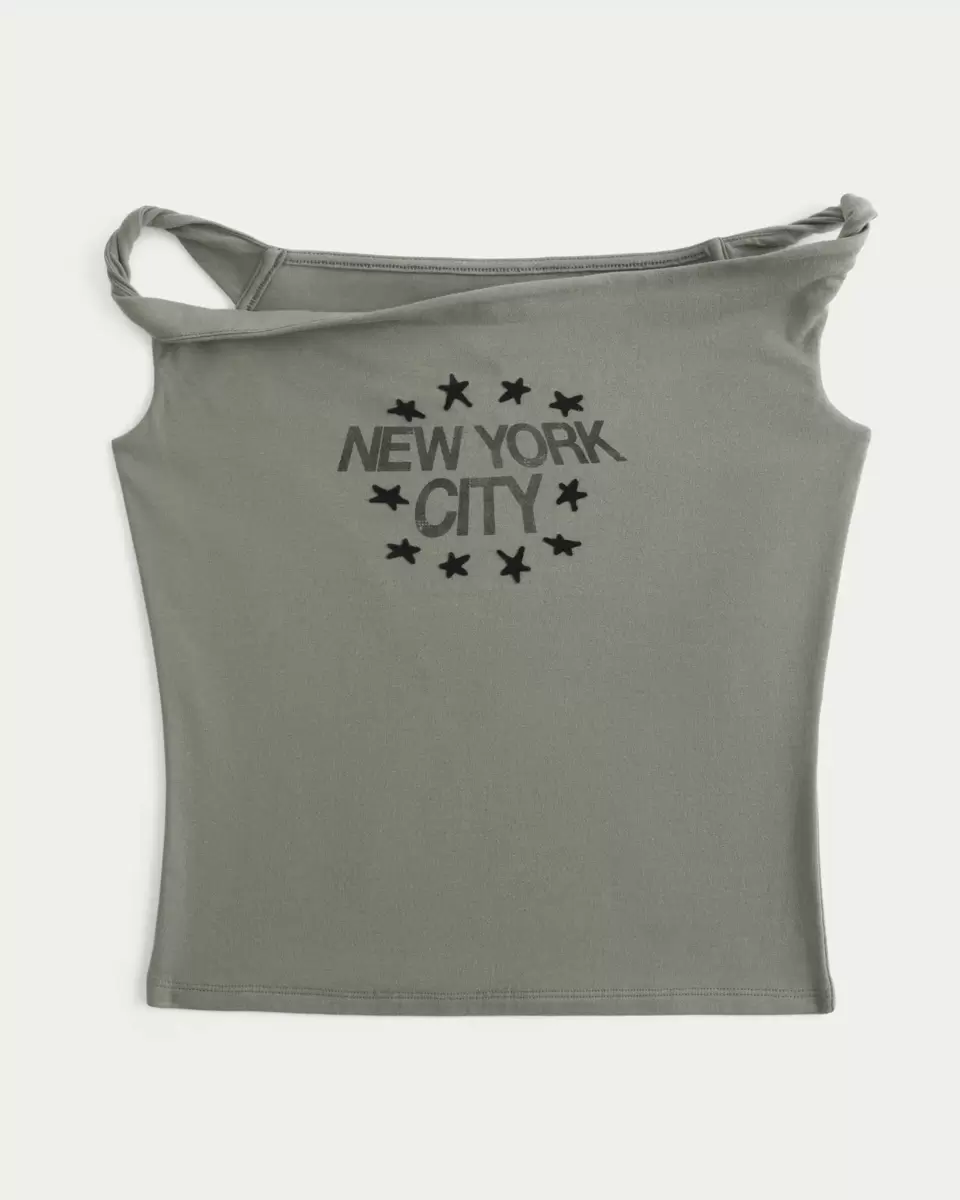 Super soft and comfy, this trend drop tee features a vintage-inspired New York City print graphic and twisted off-the-shoulder neckline. Slim Fit.