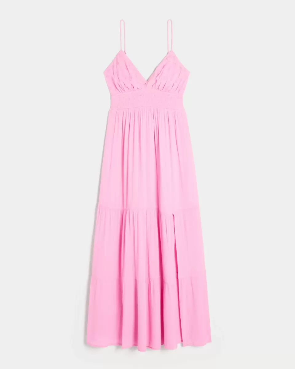 This pretty and super soft maxi-length dress features embroidered details at the bust. Split hem detail, adjustable straps, soft smocked waist. Imported.