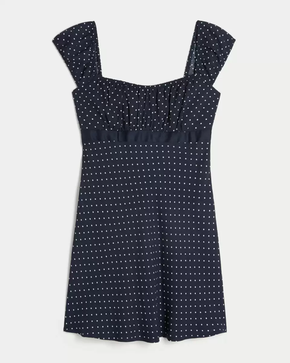 Made with flowy and super soft crepe fabric, this mini dress features a pretty satin band detail at the waist and cap sleeves.