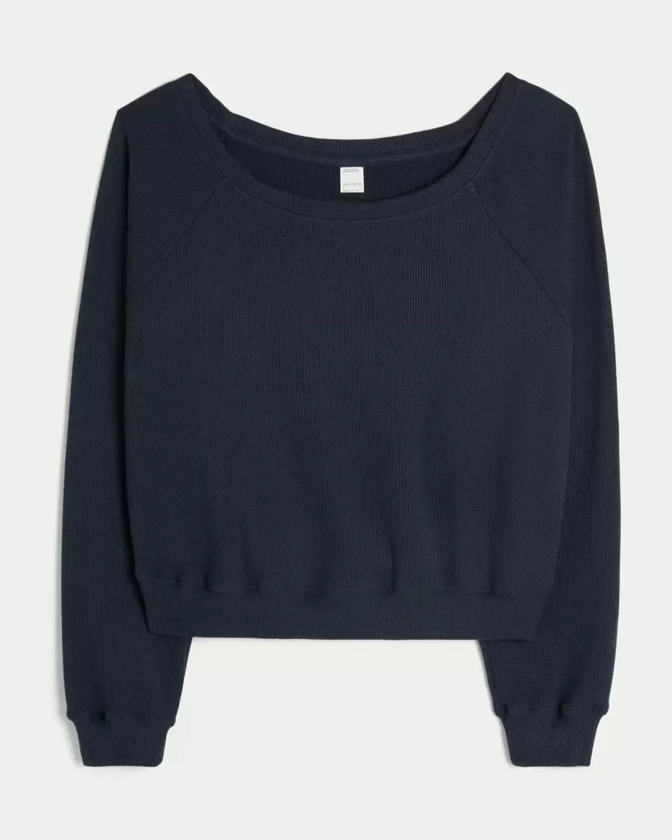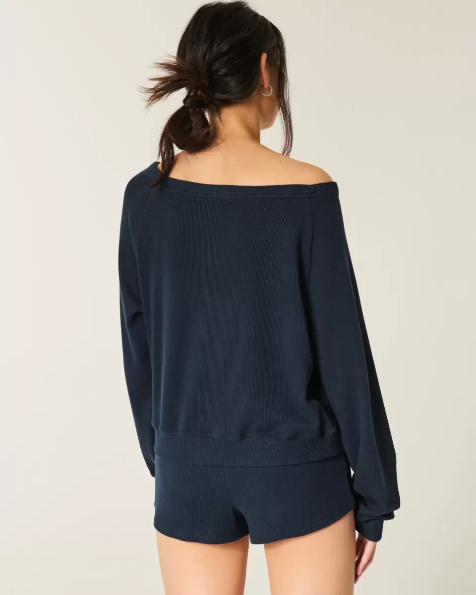 A cozy and super soft top in waffle fabric, designed with an off-the-shoulder neckline. Long sleeves. Imported.