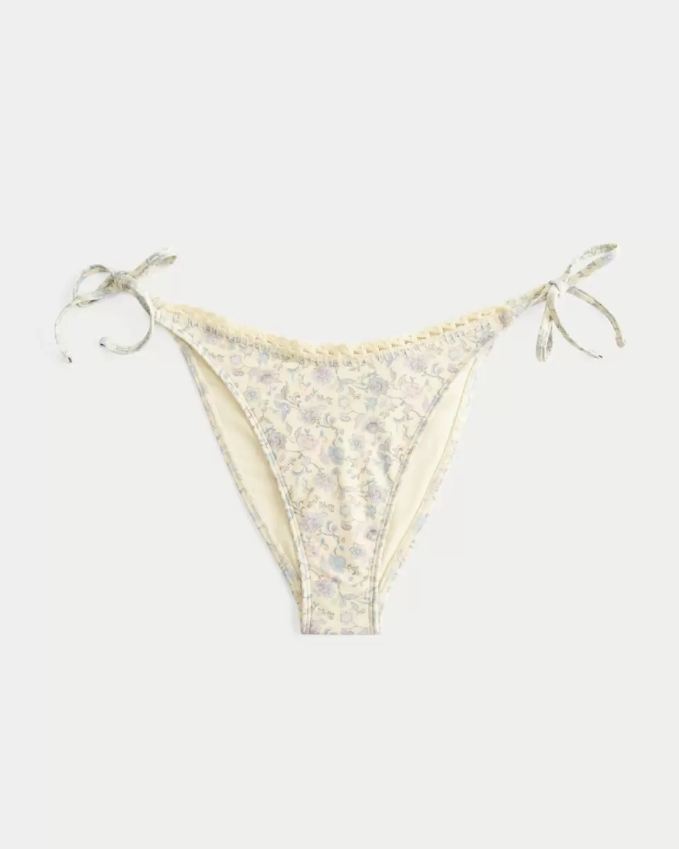 This cute bikini bottom is made with soft swim fabric and features crochet-style trim detailing. Side ties, cheeky coverage. Imported.