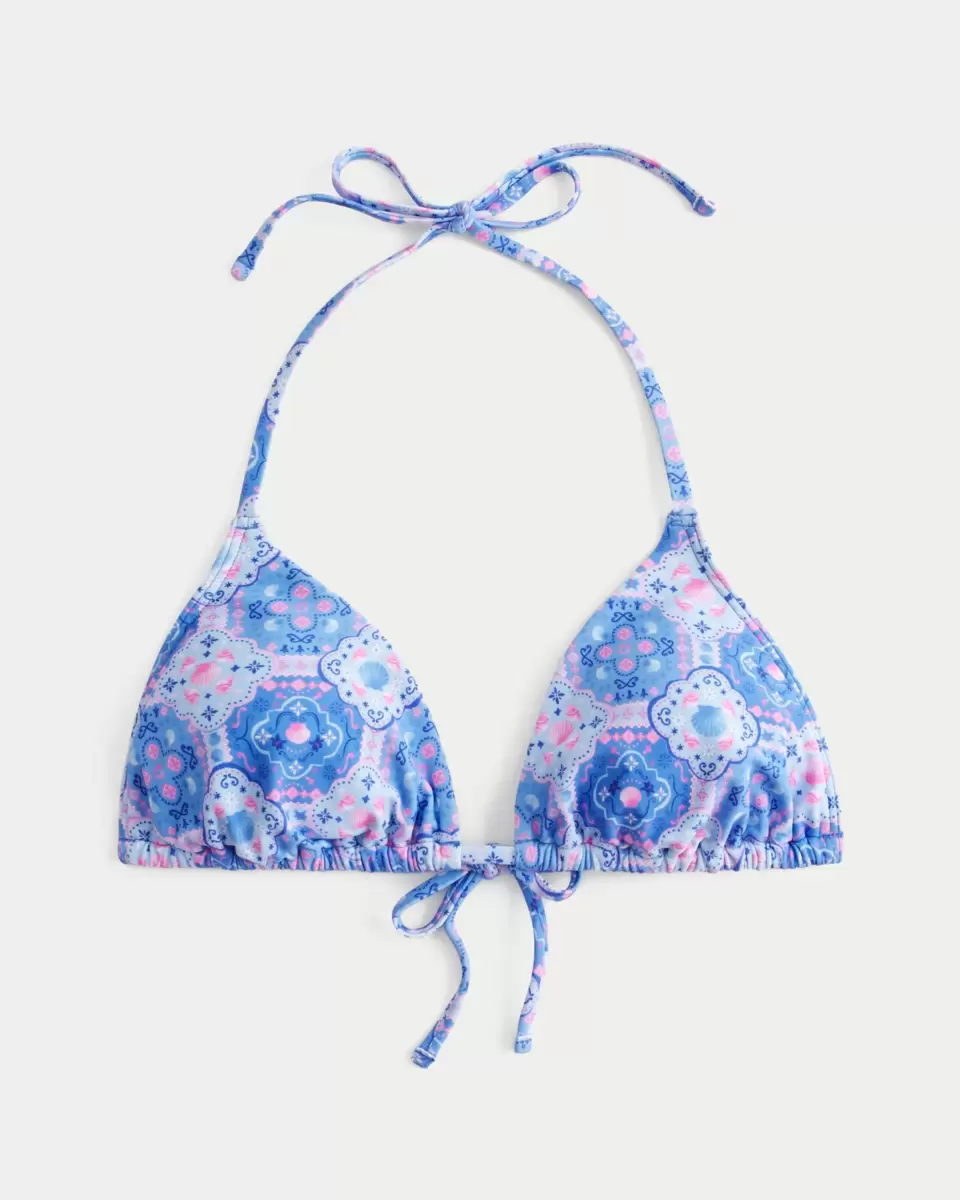 This cute triangle bikini top features a tie closure and a spring-break-inspired pattern. Soft swim fabric, removable padding. Imported.