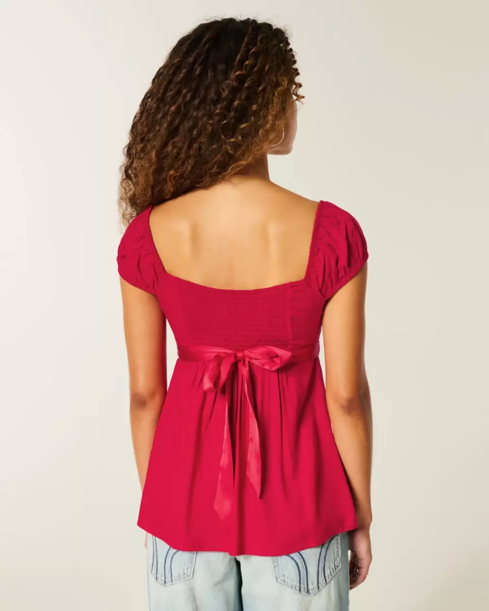 A pretty and super soft Y2K-inspired babydoll top featuring a satin tie detail at the waist and ruched detailing through the bust. Soft smocked back. Easy Fit.