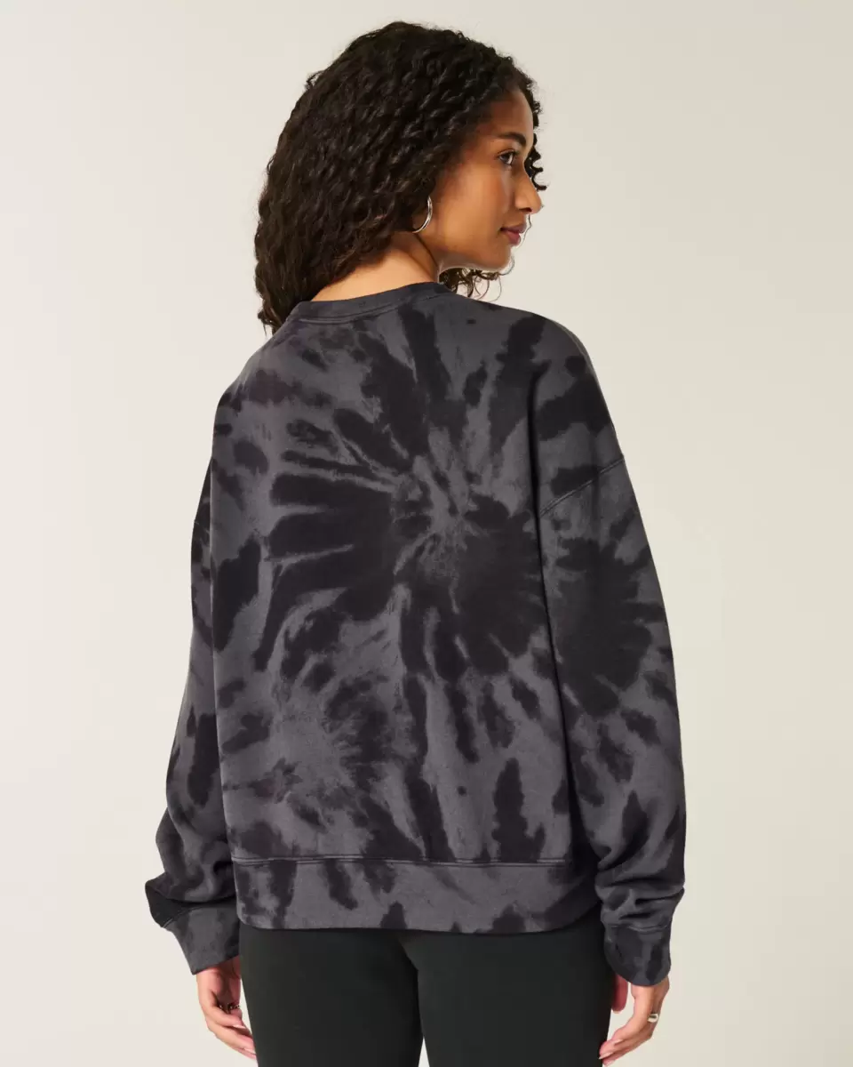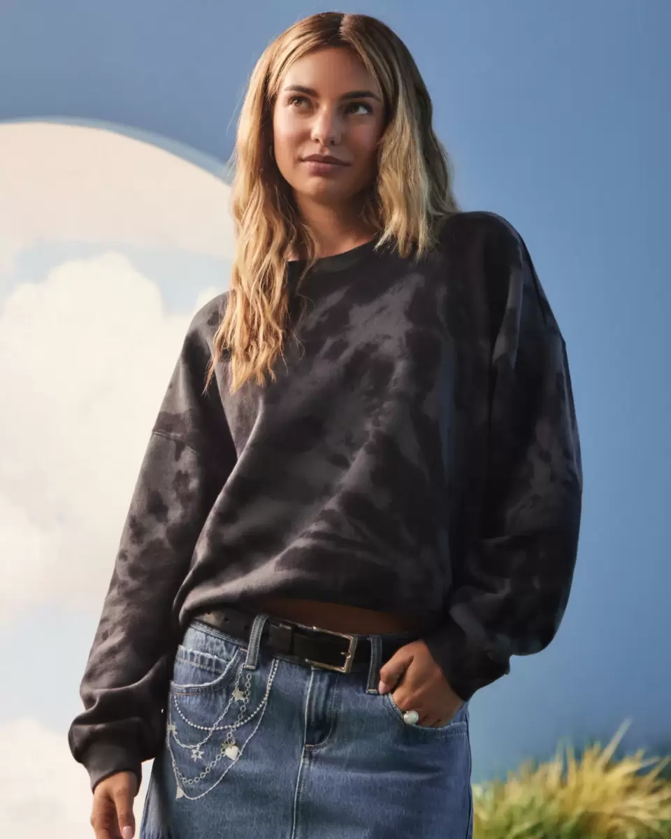 A super soft fleece sweatshirt featuring an all-over tie-dye-style pattern. Crew neckline, long sleeves. Easy Fit. Imported.