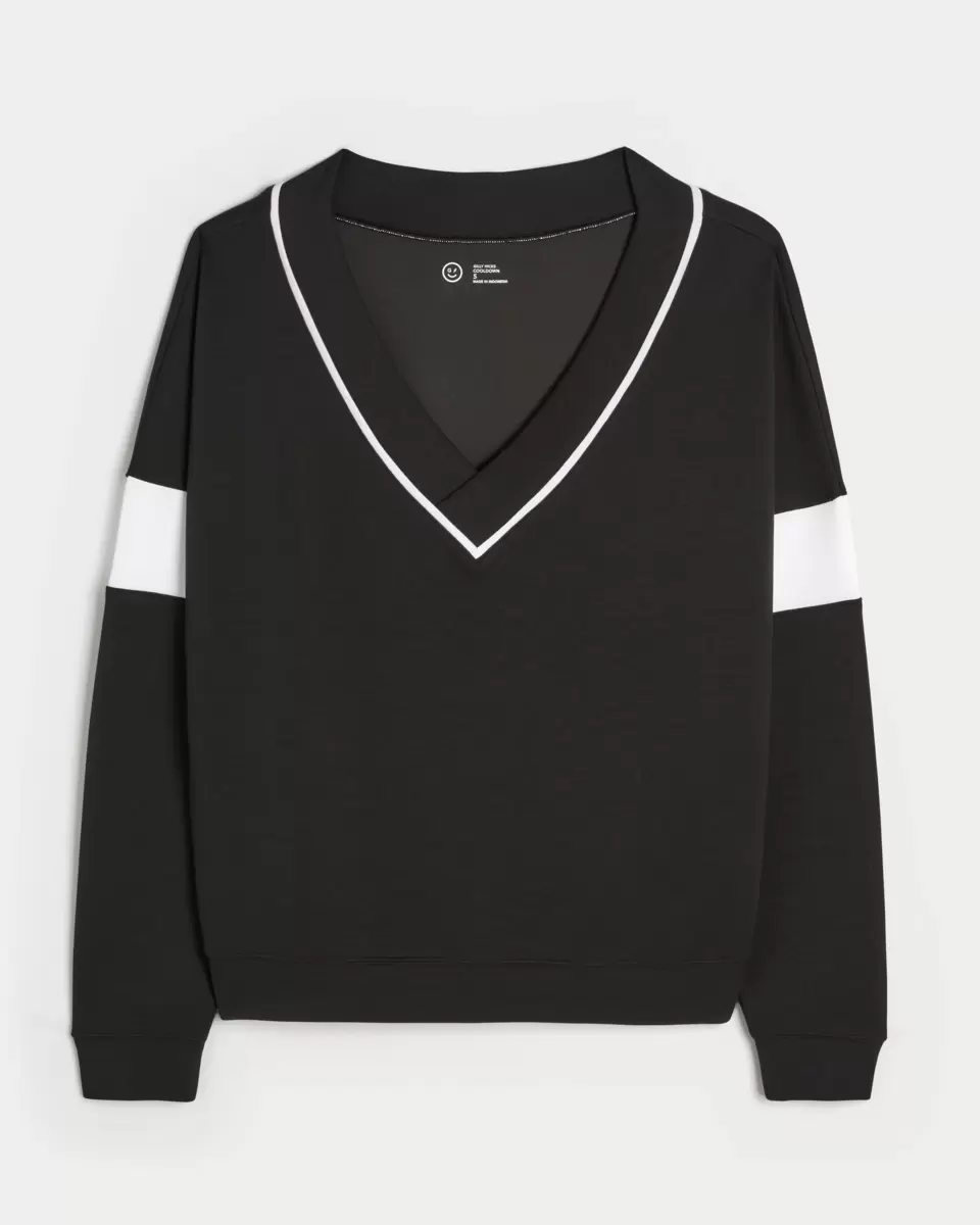 An unbelievably cute and comfy long-sleeve top made with our super soft Cooldown fabric. Off-the-shoulder v-neckline.