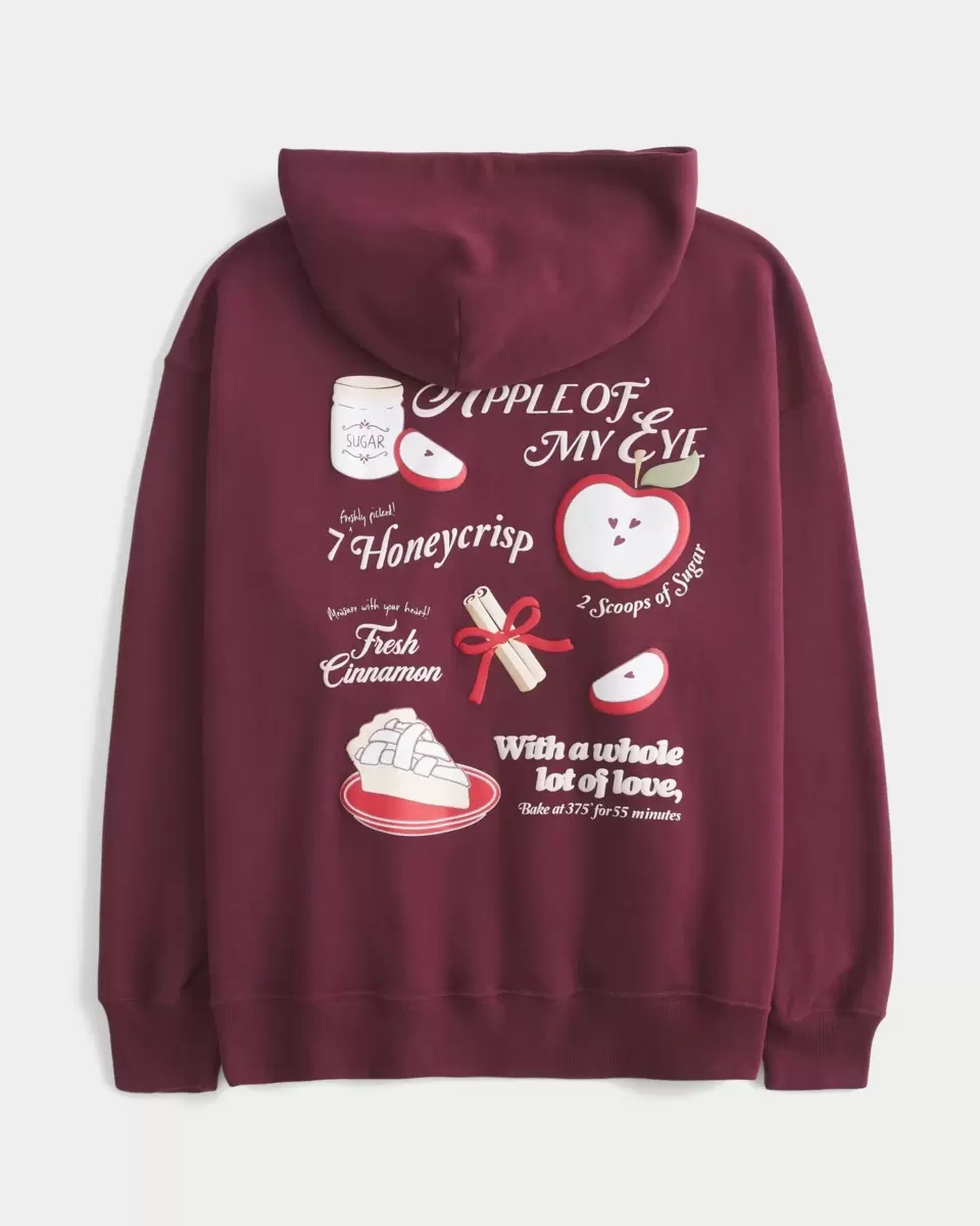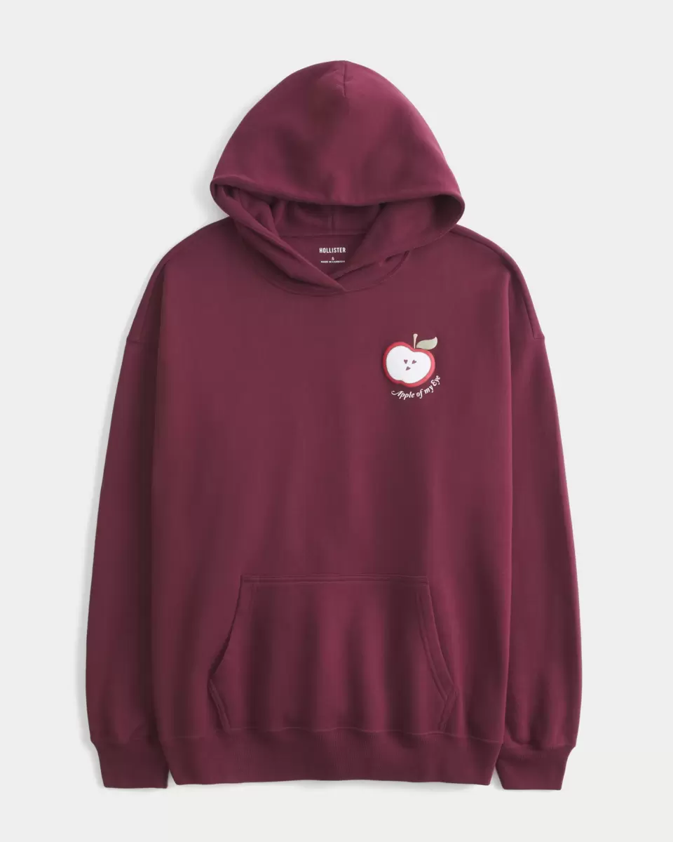 A super soft fleece hoodie featuring apple graphics at the left chest and back. Hood, front pouch pocket, long sleeves. Imported.