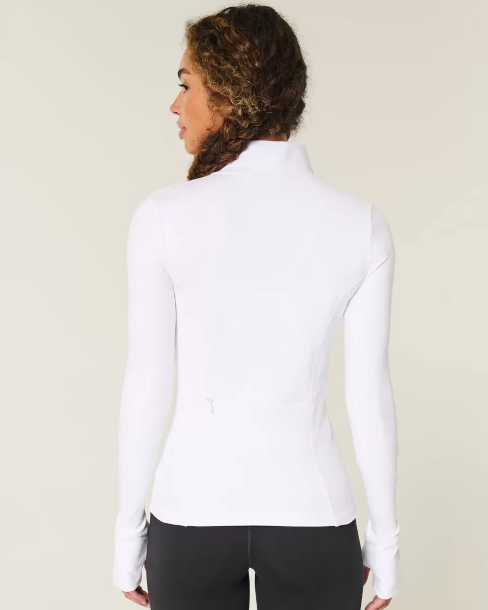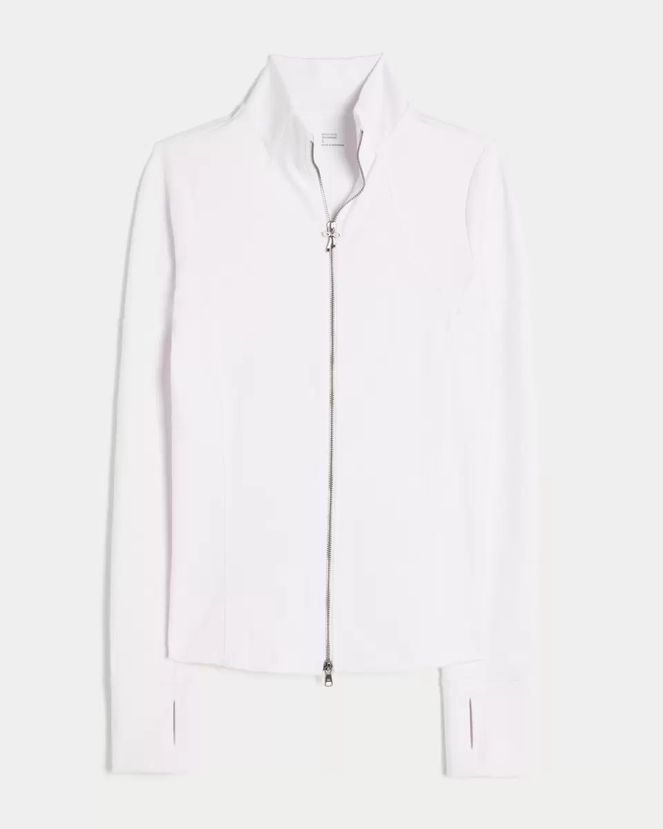 Designed in our breathable, 4-way stretch, moisture-wicking Recharge fabric with a super soft, brushed feel. Dual zipper closure, long sleeves with thumb openings. Slim Fit. Imported.