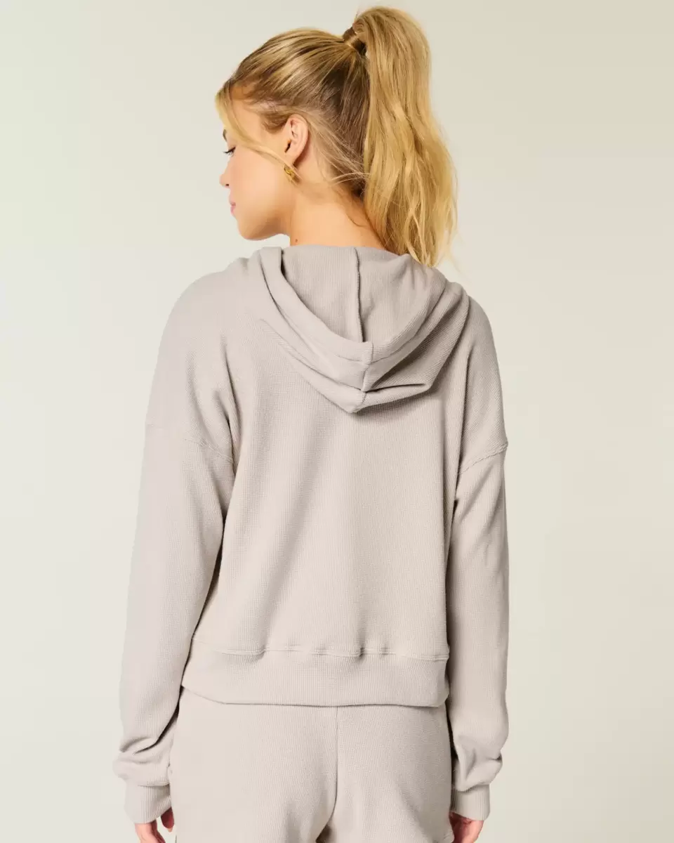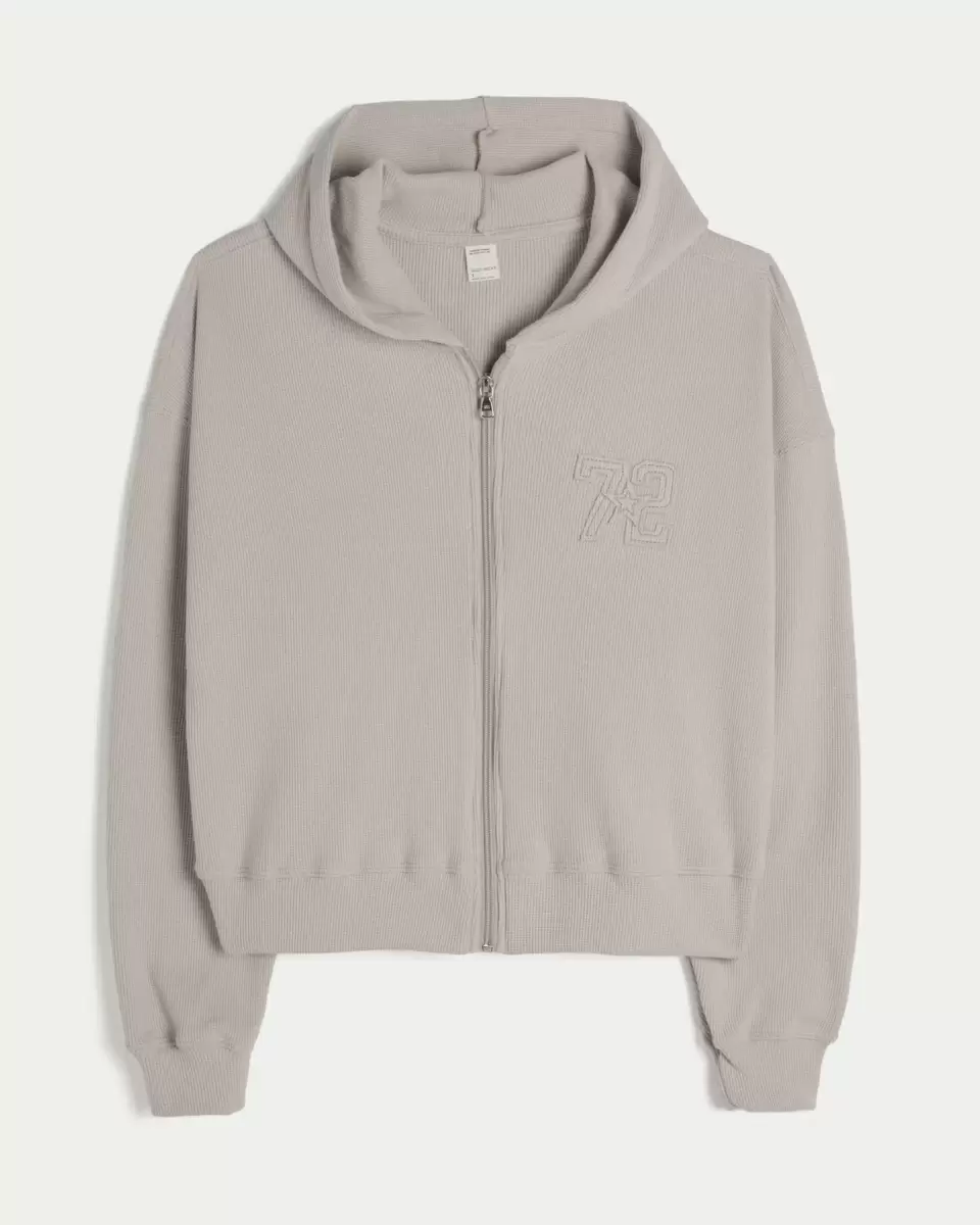 A super soft hoodie in cozy waffle fabric, with a full zip-up closure. Long sleeves, hood. Imported.