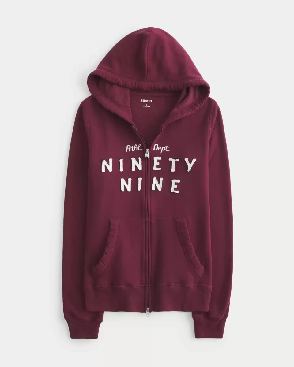 A super soft fleece hoodie featuring distressed Ninety Nine graphic applique with embroidery. Full zip-up closure, long sleeves, front pockets, hood. Slim Fit. Imported.
