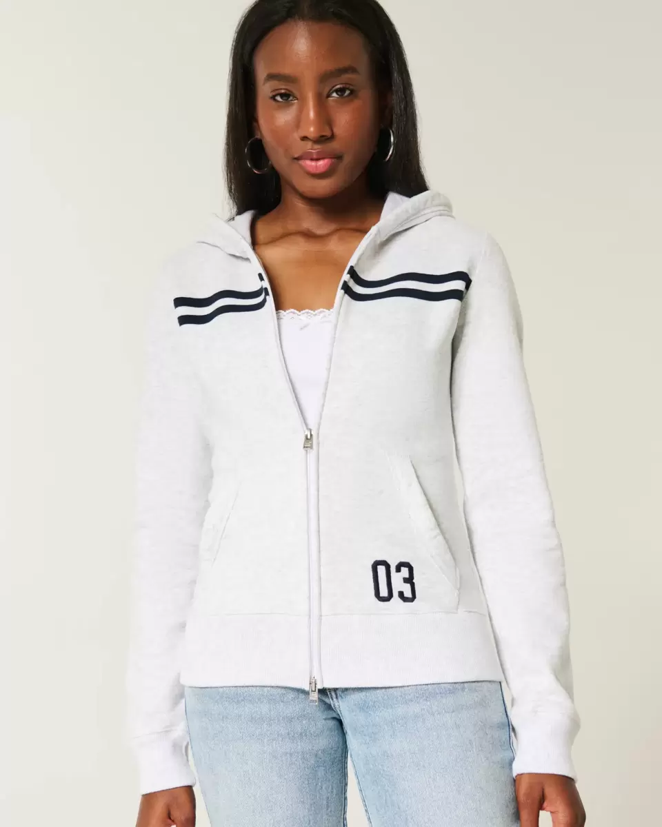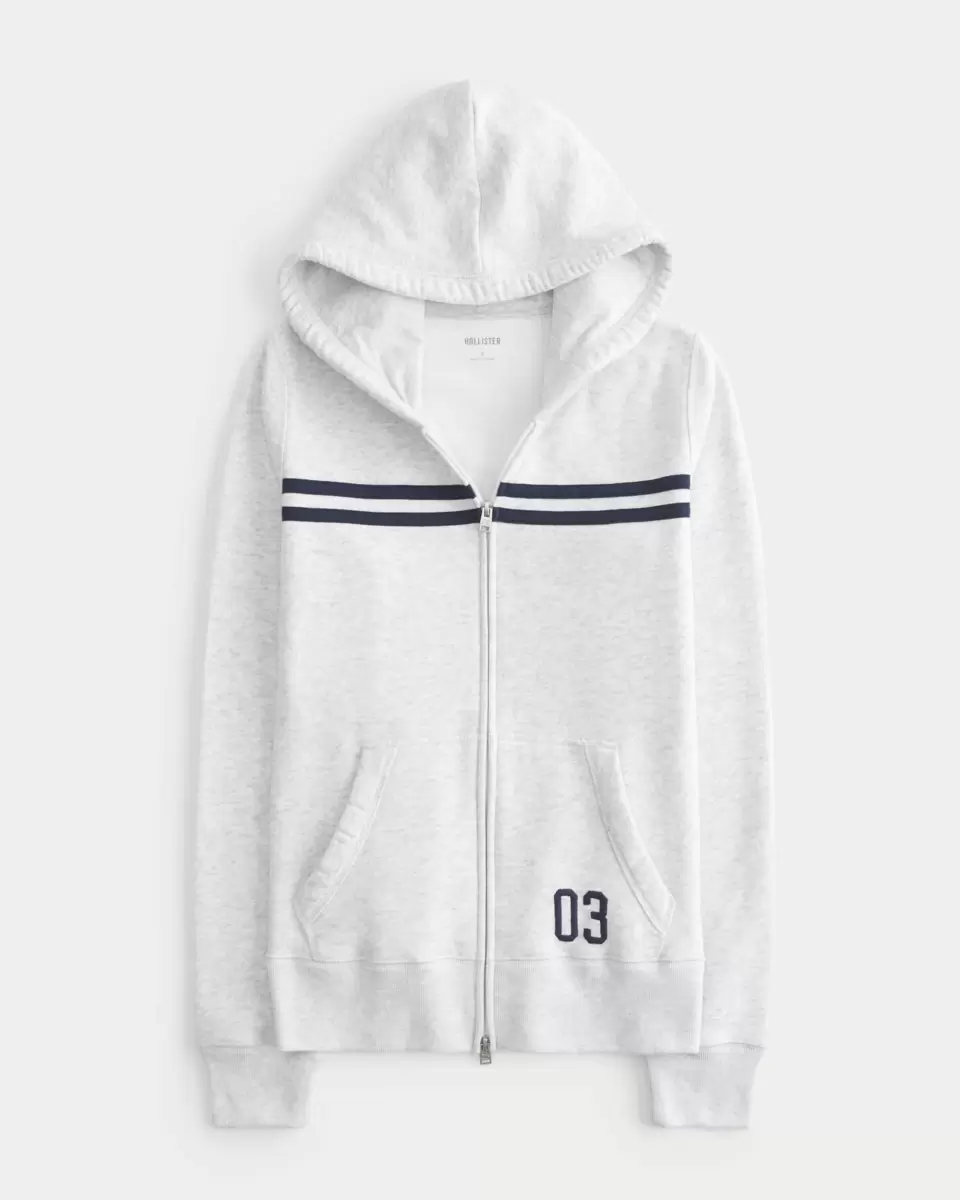 A super soft fleece hoodie featuring chest stripes and a sporty number detail at the pocket. Full zip-up closure, long sleeves, front pockets, hood. Slim Fit. Imported.
