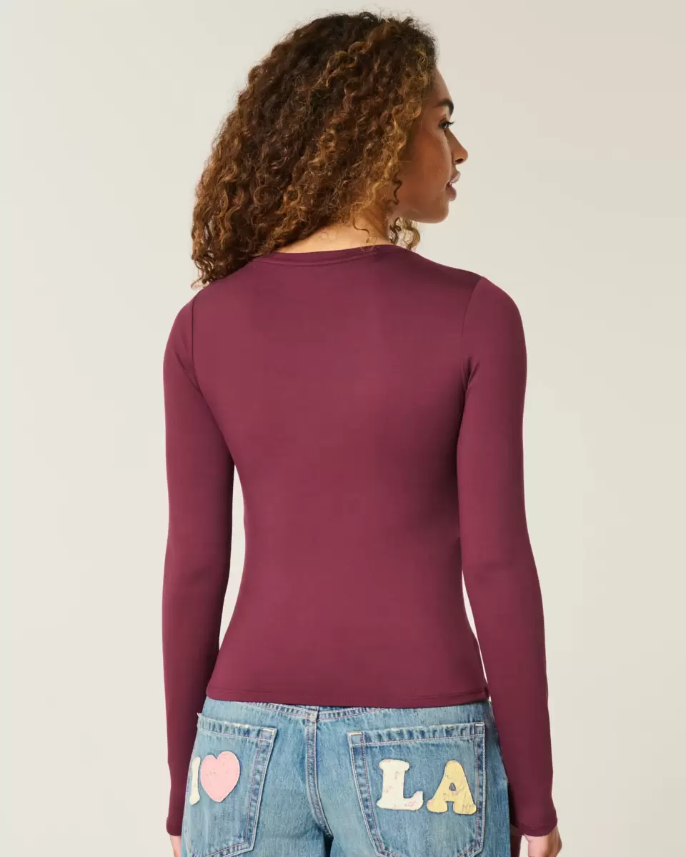 This cozy top is made with super soft fabric with a seamless look and feel. Crew neckline, long sleeves. Slim Fit. Imported.