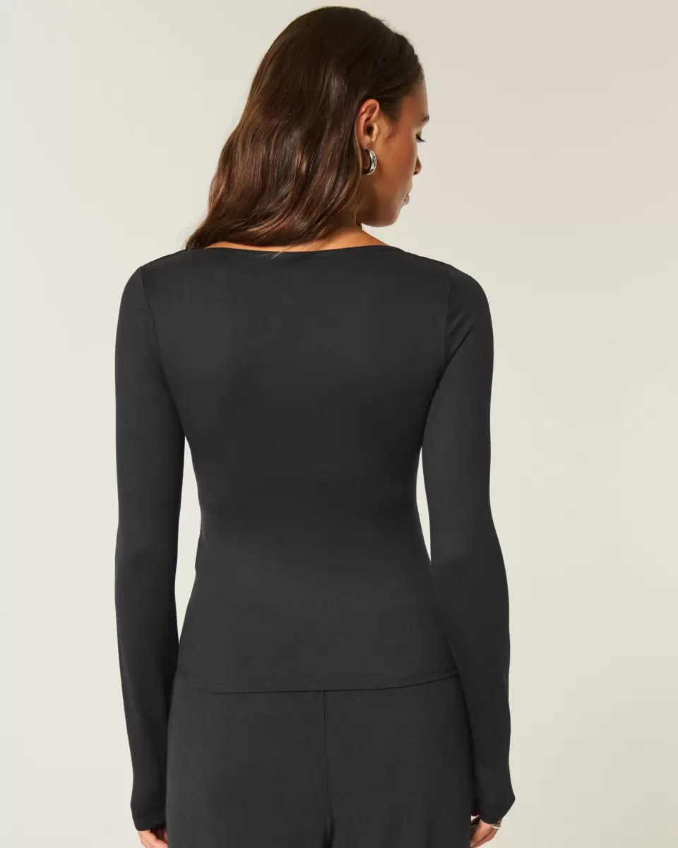 A cute and comfy top in super soft fabric with a seamless look and feel. Scoop neckline, long sleeves. Slim Fit. Imported.