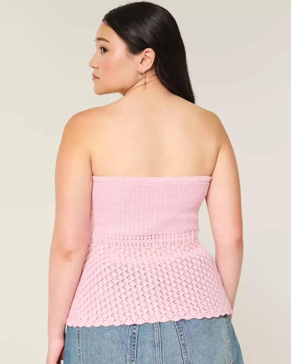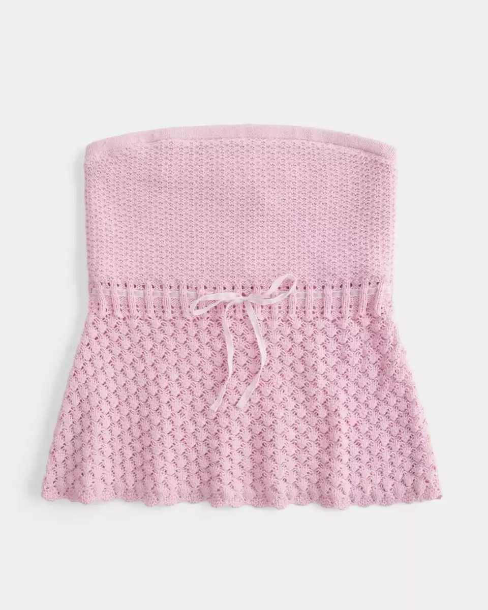 Crochet-Style Strapless Sweater Tube Top