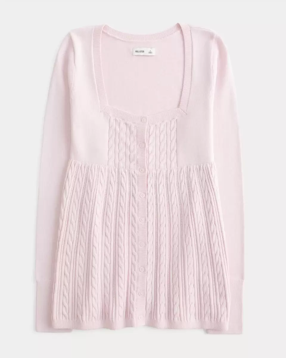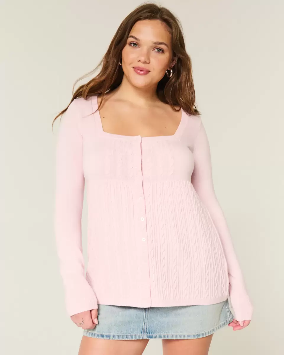 Perfect for layering with a cami or on its own, this long-sleeve sweater is designed with a square neckline and cute Y2K-inspired babydoll silhouette. Front button closure, cable-k